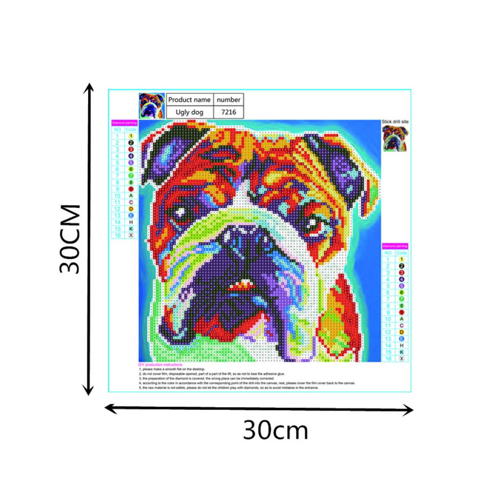 DIY Diamond Painting Kit Cross Stitch 30x30cm Home Wall Decor Crafts Bulldog