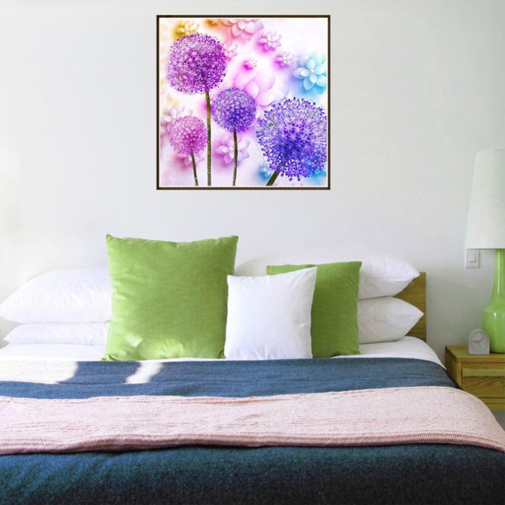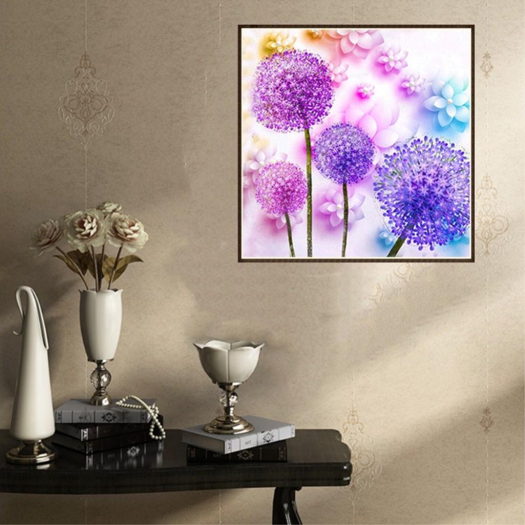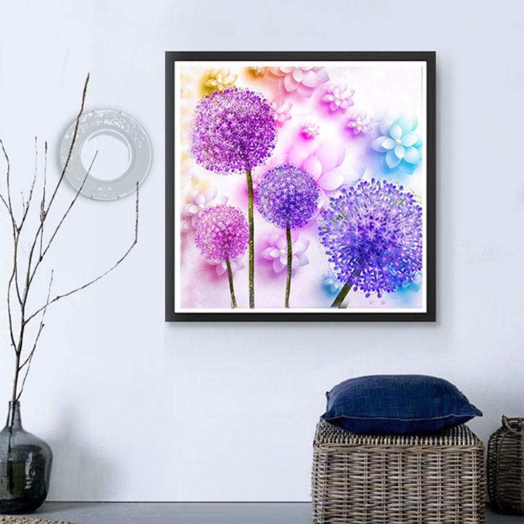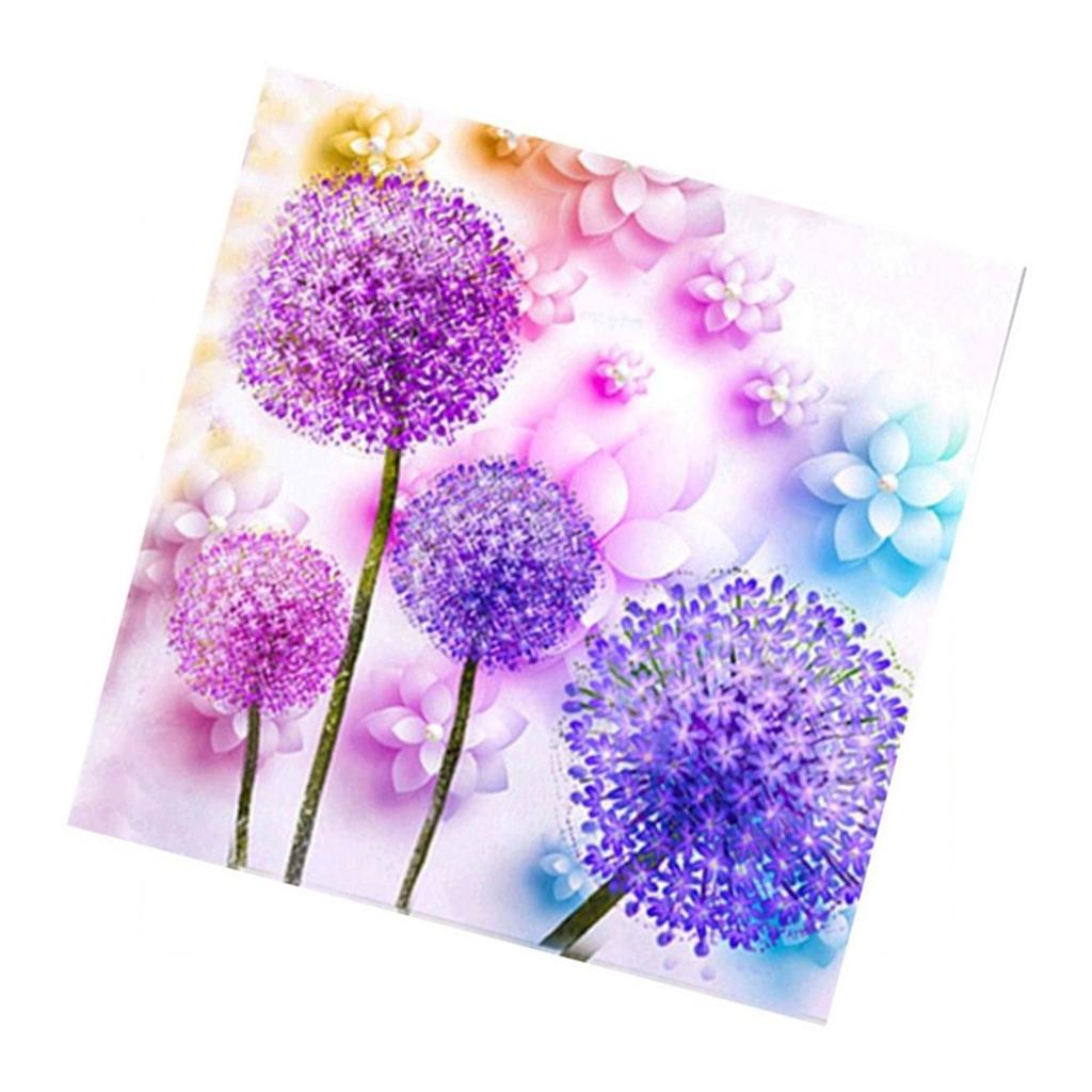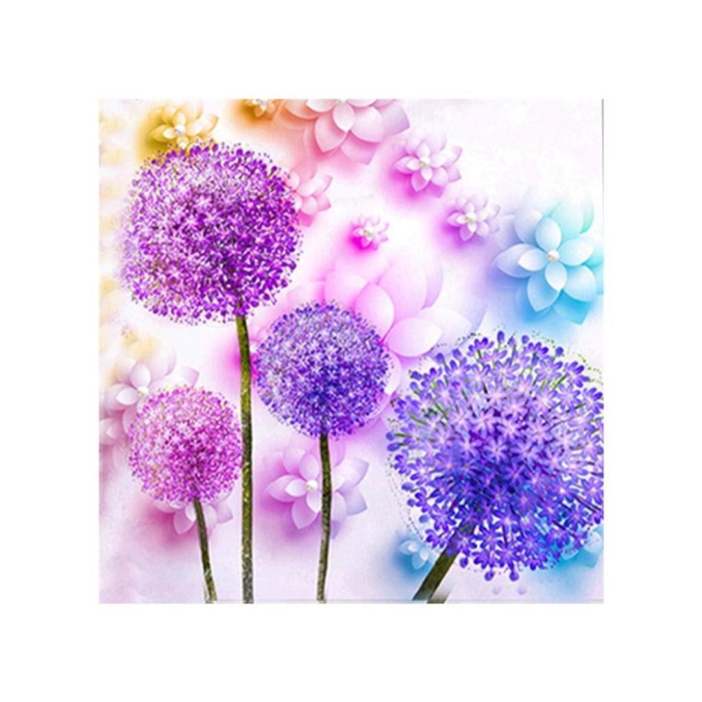 Full Drill Dandelion DIY 5D Diamond Painting Embroidery Cross Stitch Purple