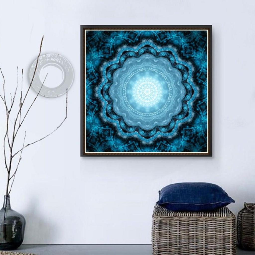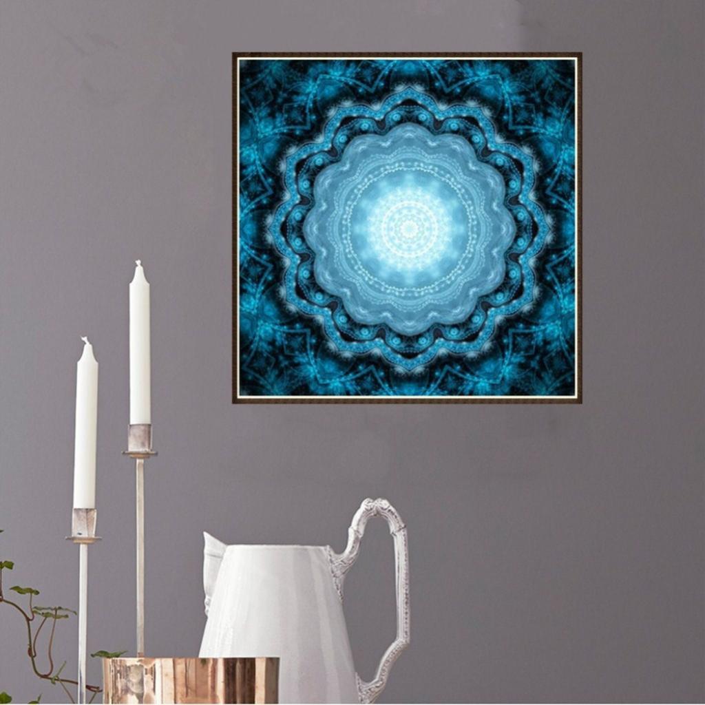 Full Drill Flower DIY 5D Diamond Painting Kit Home Decor 25x25cm Deep Blue