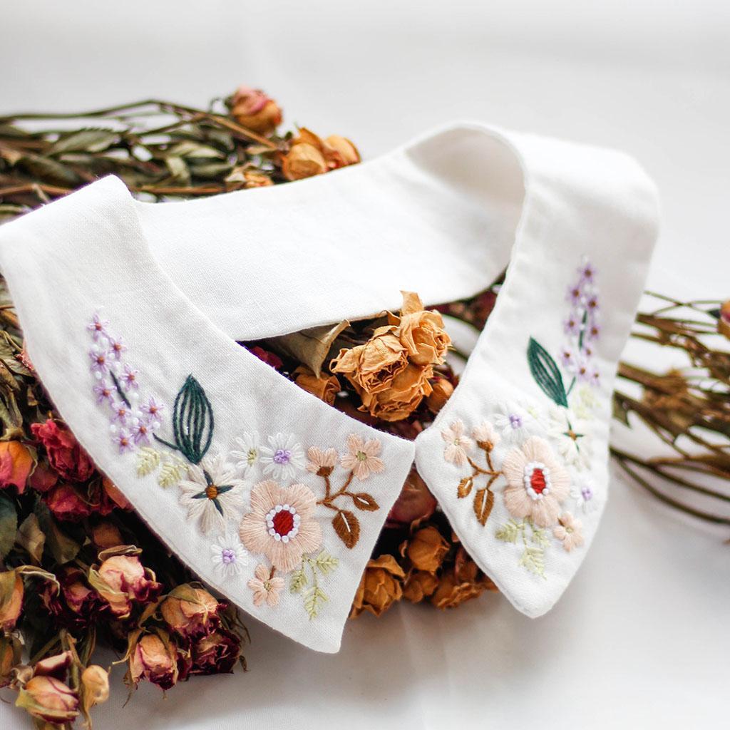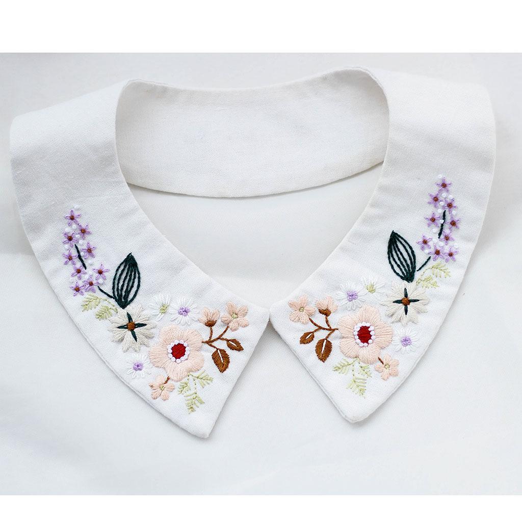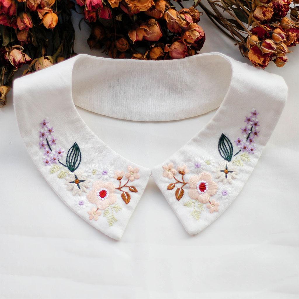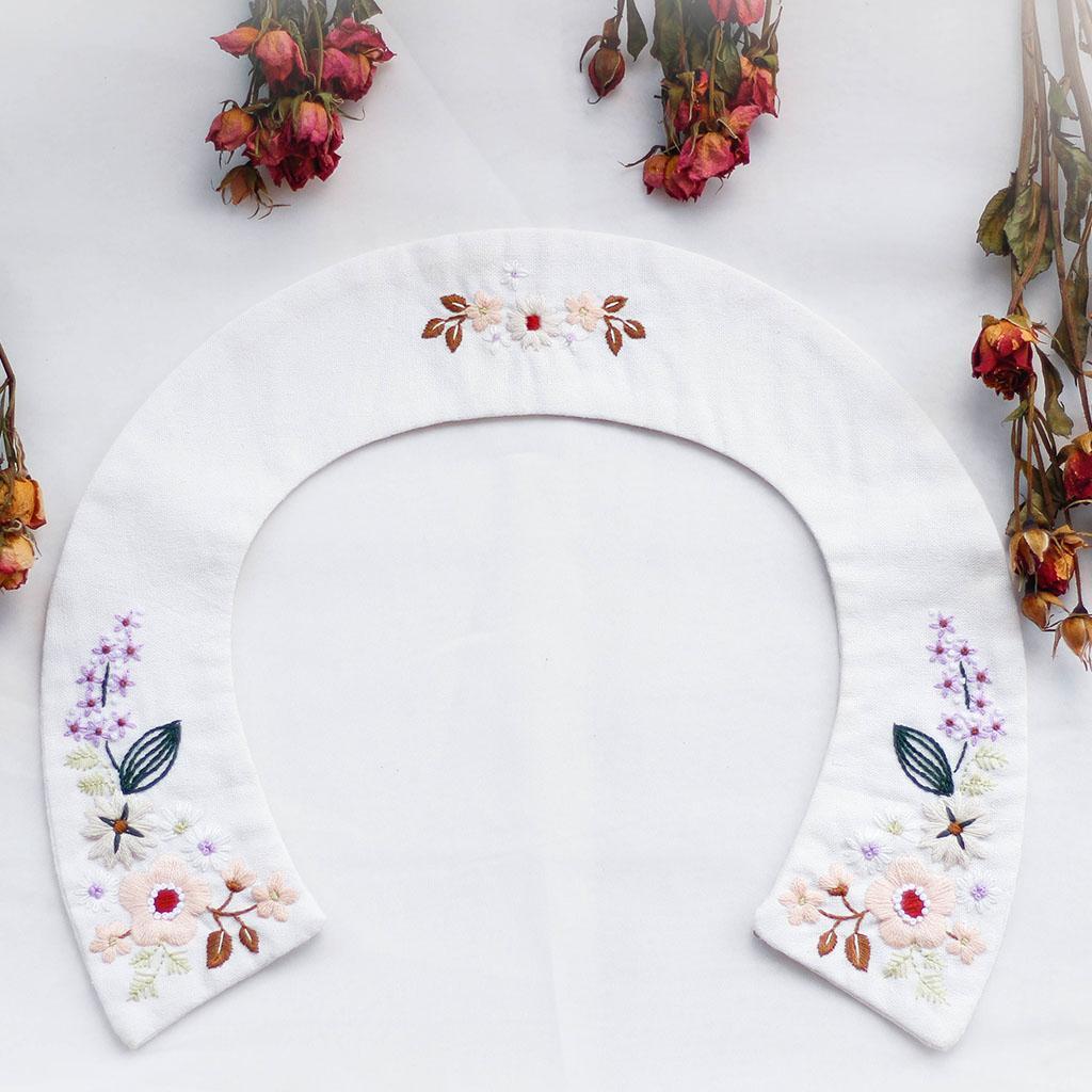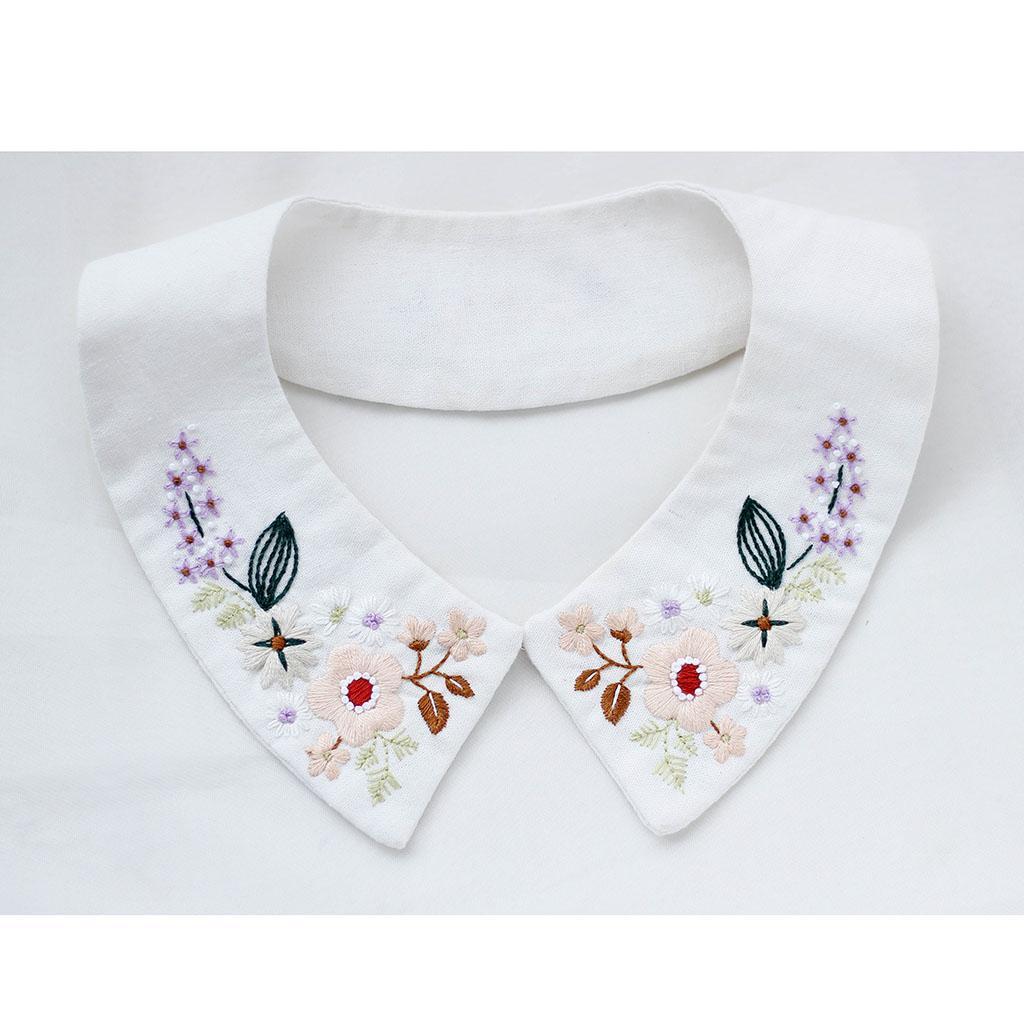 Handmade cross stitch embroidery kit including embroidered cloth, thread, needles, collar hook and instruction. (without embroidery hoop)