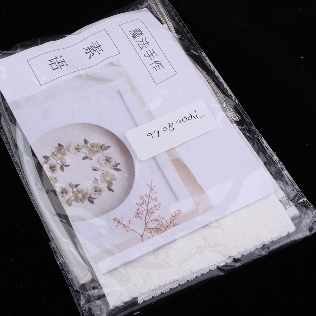 Handmade cross stitch embroidery kit including embroidered cloth, thread, needles, pearl head needles pre-printed cloth, copper wire, glue stick and instruction. (without embroidery hoop)