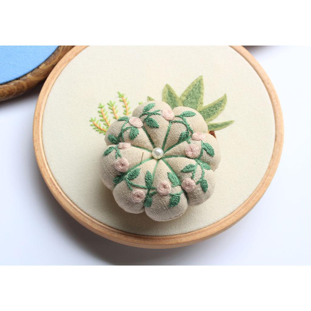 Handmade Pin Cushion Embroidery Starter Kit with Flower Pattern Including Embroidery Cloth, Threads and Needles for Beginners