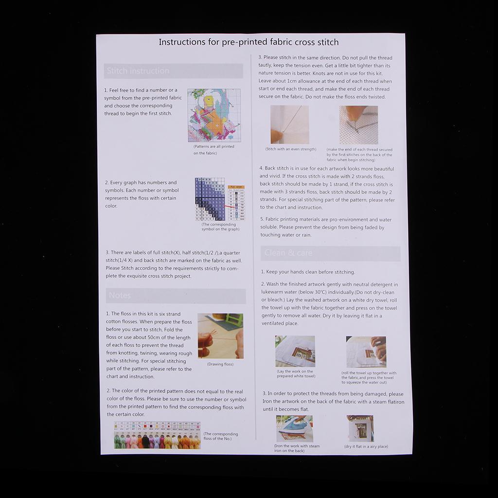 The printing of embroidered cloth is water-soluble pigment. Please do not touch water before finished the embroidery. After finished, you can rinse it with water and dry.
