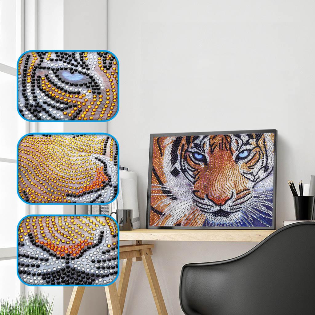 Special-shaped DIY diamond paiting kit for adults and children embroidery arts craft, including 1 piece painting canvas, 1 set of diamonds and 1 set of point drilling tools.