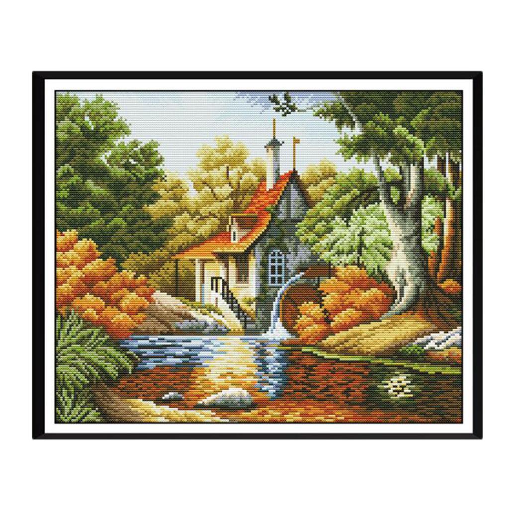Stamped cross stitch kit, printed cloth with toolkit, simple and convenient.