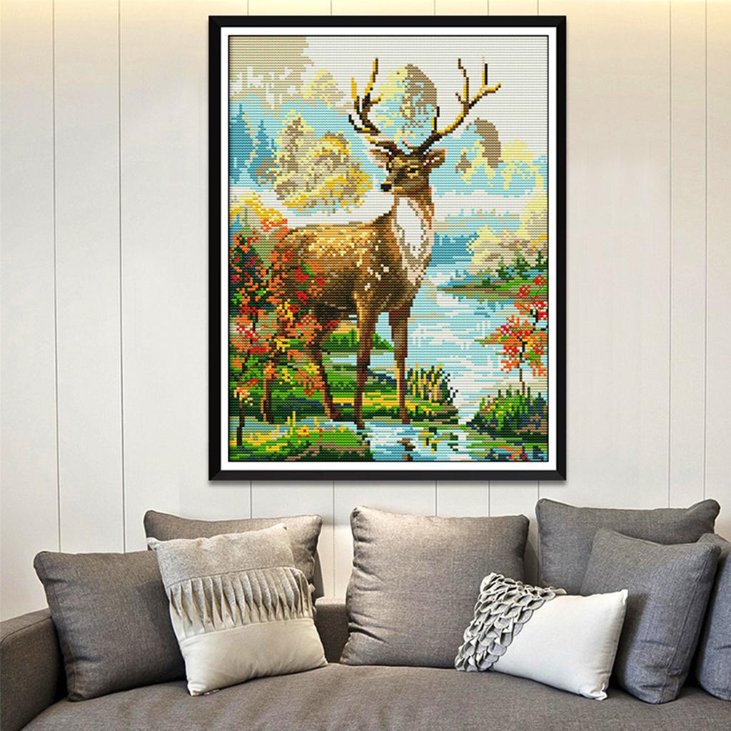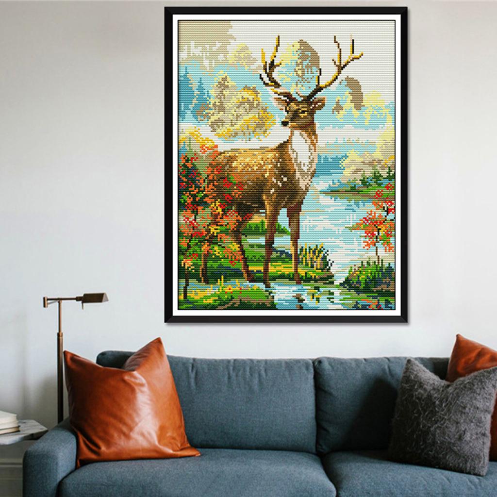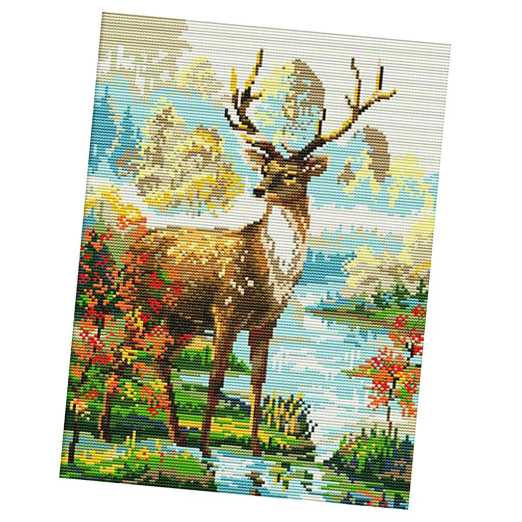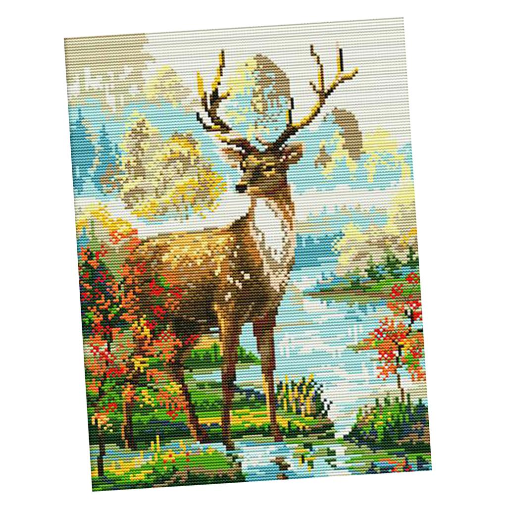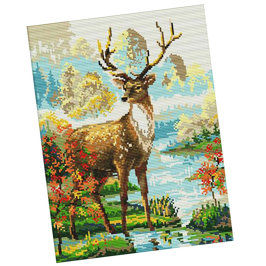 Stamped Cross Stitch Kits Patterns Embroidery Kit - Animal Stag, 14 Counted 29x36cm