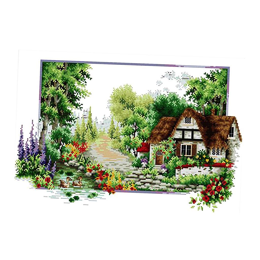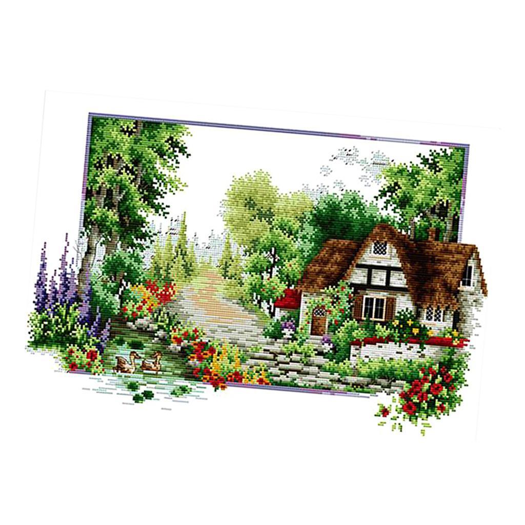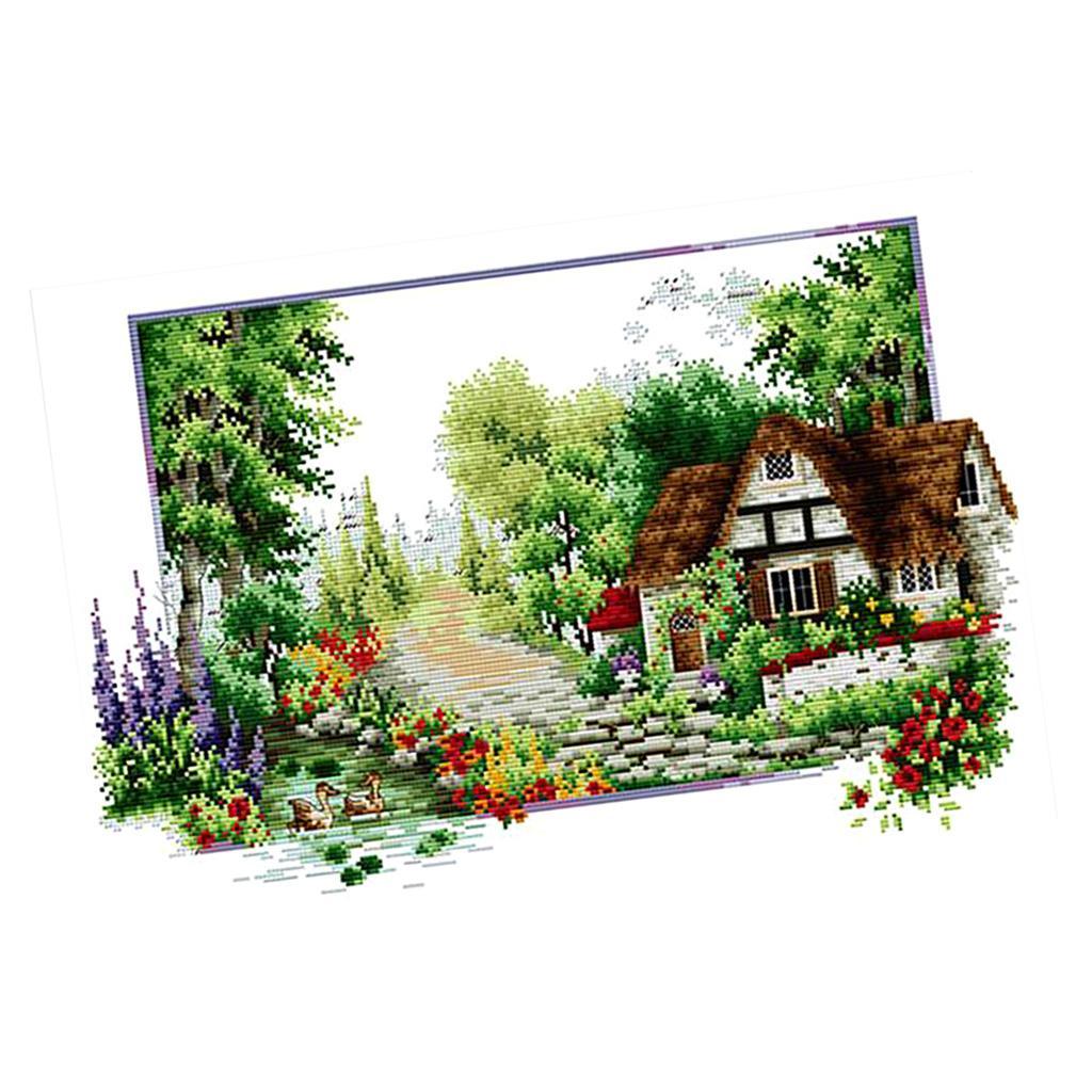 Stamped Cross Stitch Kits Patterns Embroidery Kit - Cottage Garden, 14 Counted 50x33cm