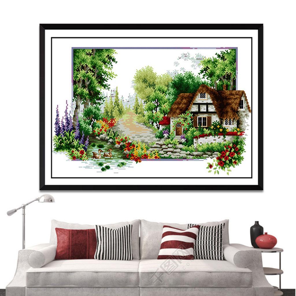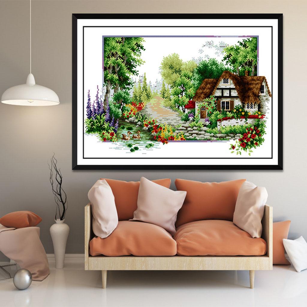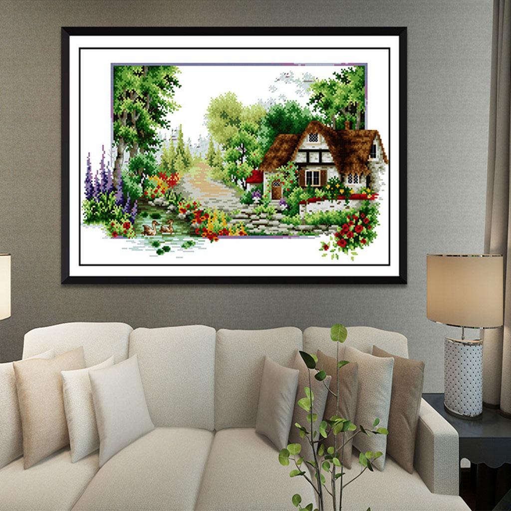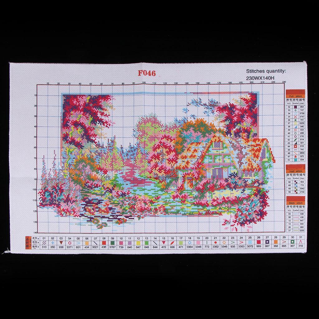 Stamped Cross Stitch Kits Patterns Embroidery Kit - Cottage Garden, 14 Counted 50x33cm
