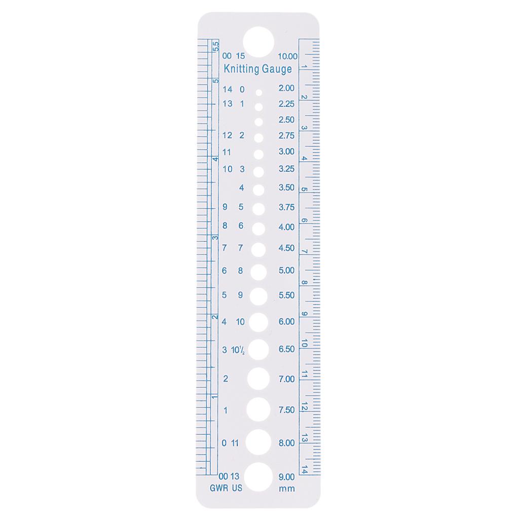 White 2-10mm 1pcs US UK Canada Sizes Knitting Needle Gauge Inch CM Ruler Tool