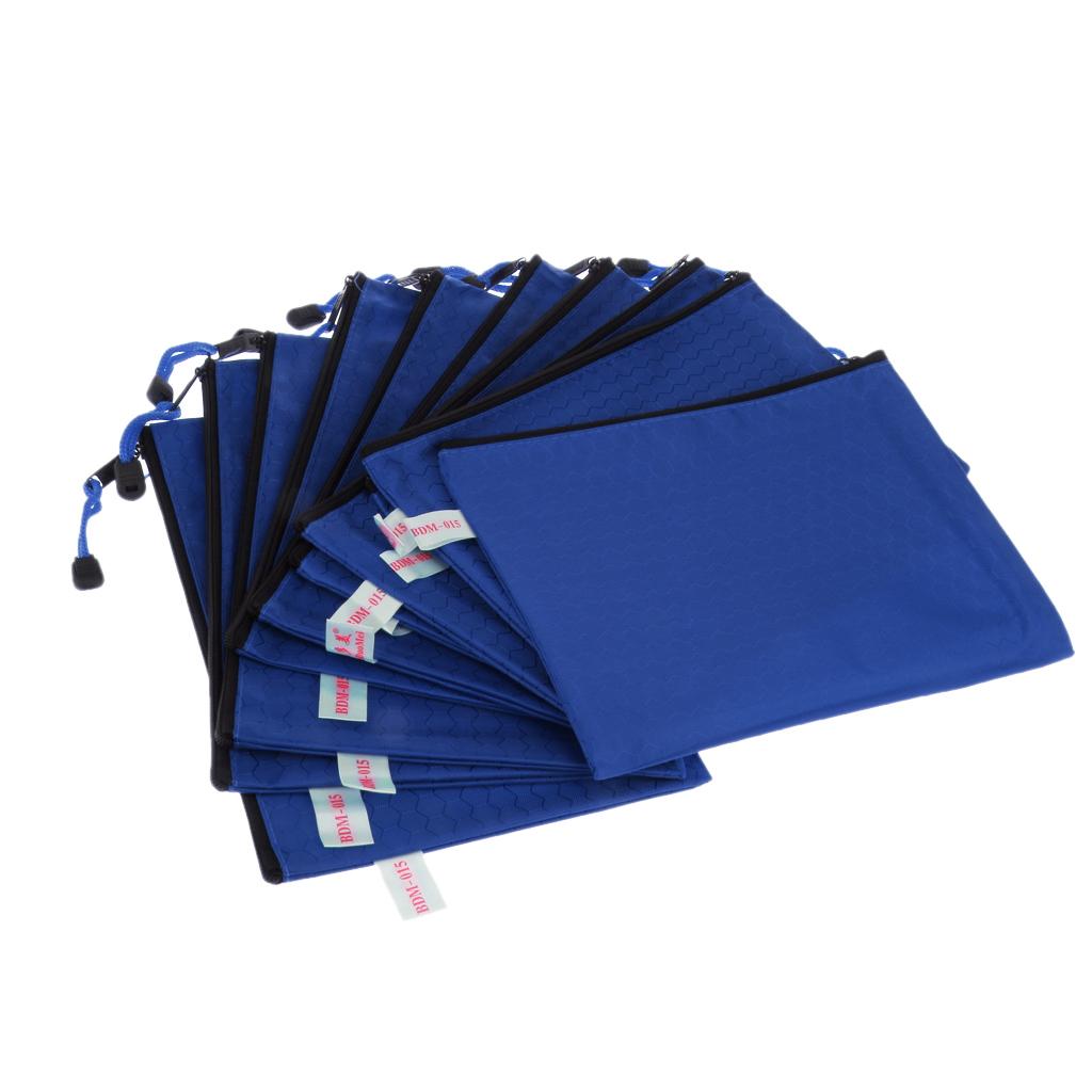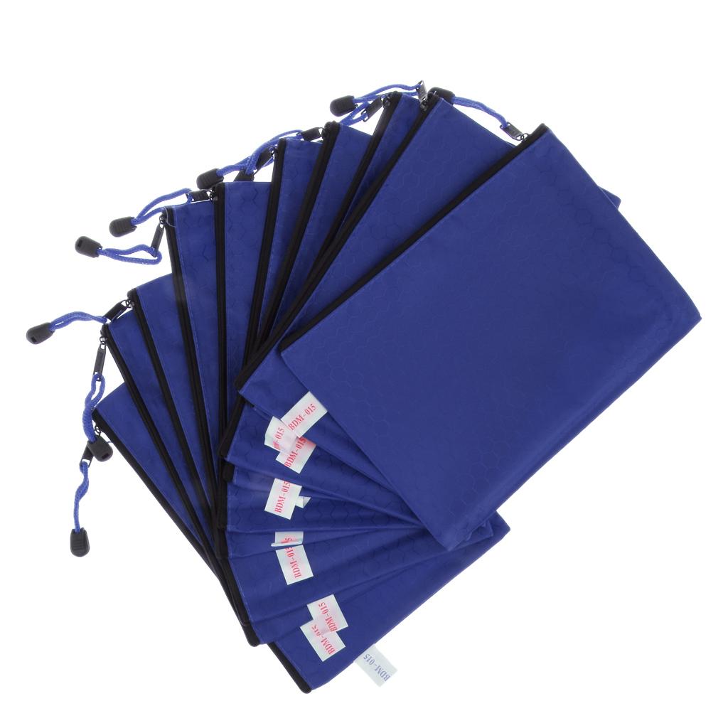 10Pcs A5 Size Blue Plastic Zippered Document Folder File Bag Office Supplies