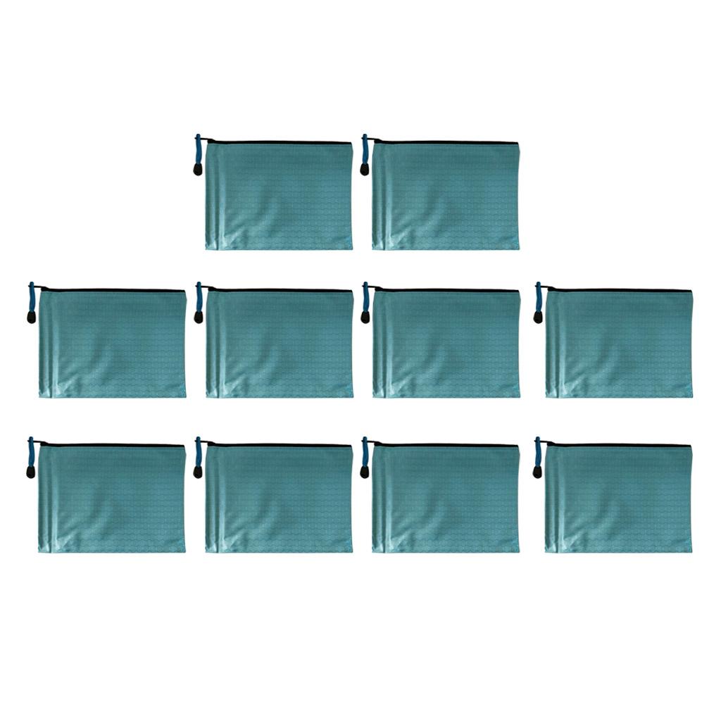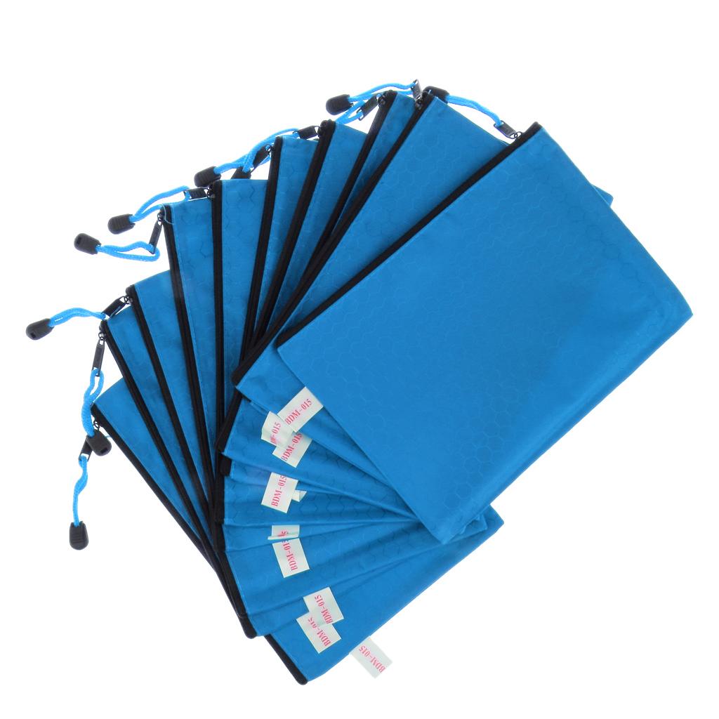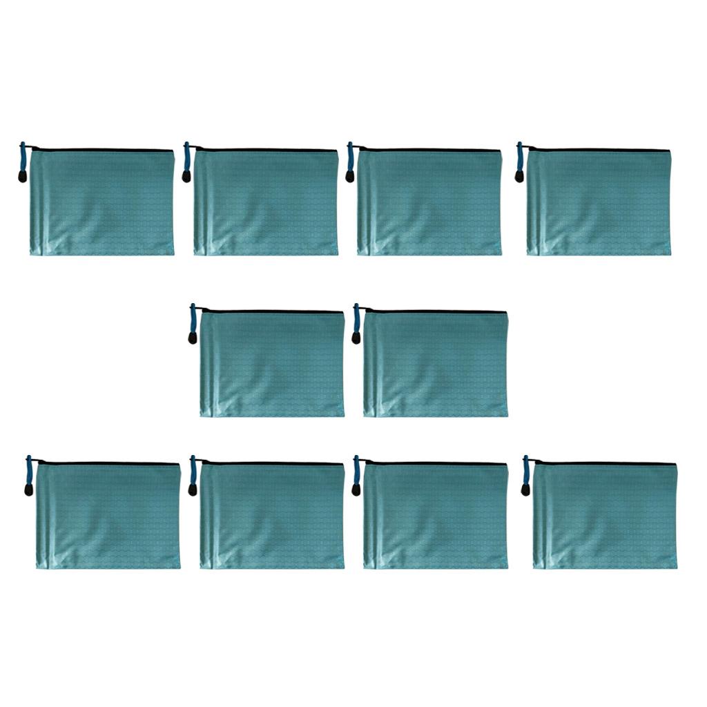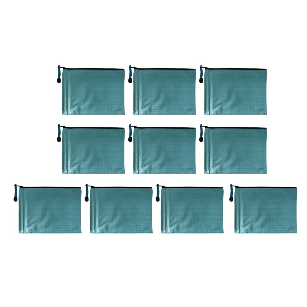 10Pcs Light Blue Plastic Zippered Document Folder File Bags Office Supplies