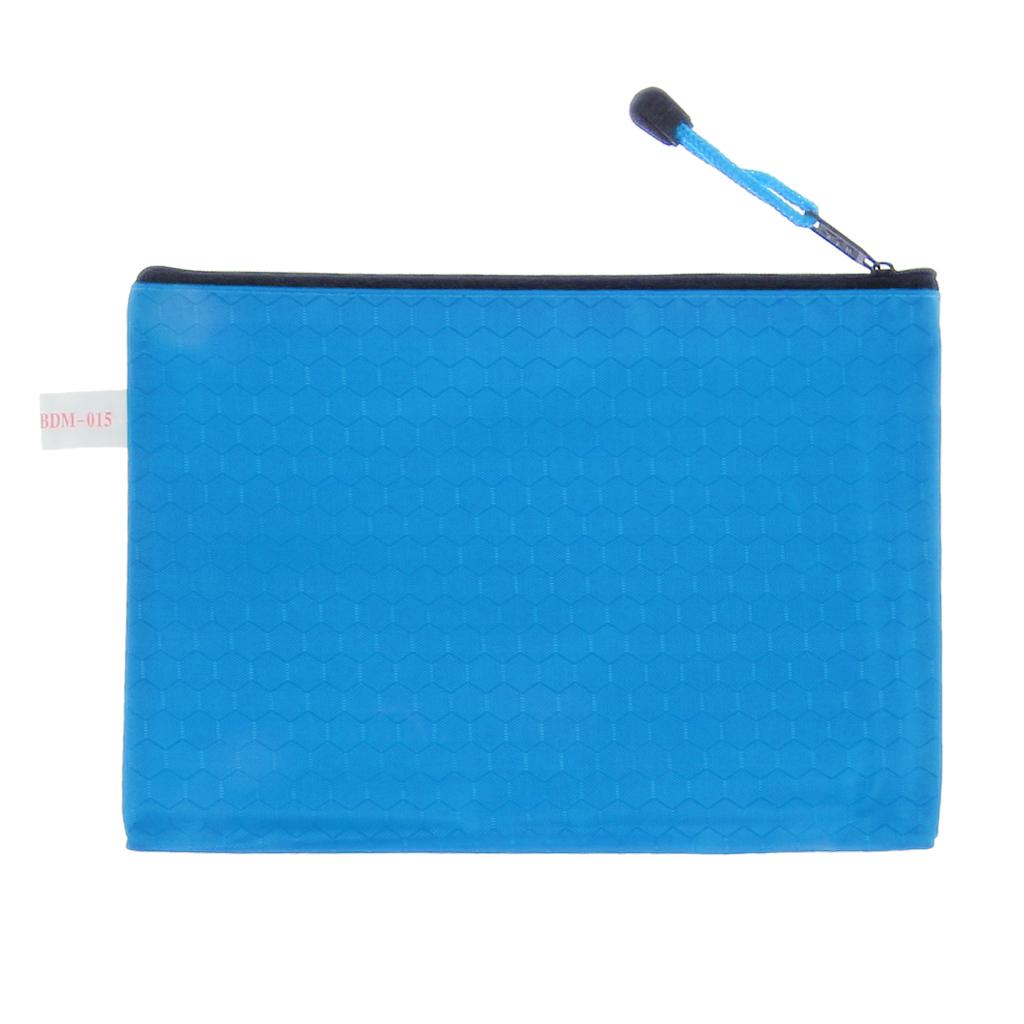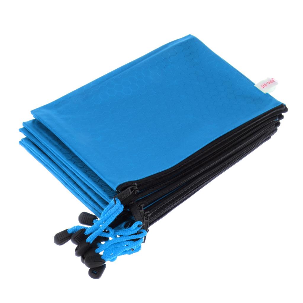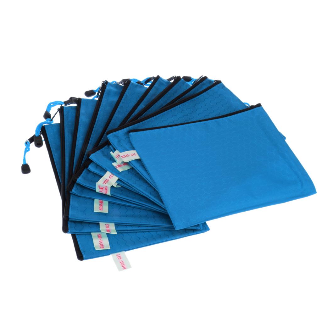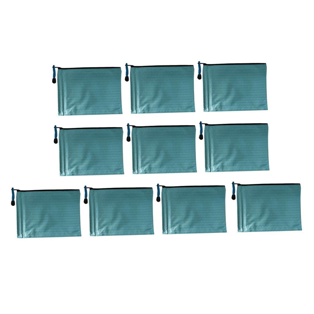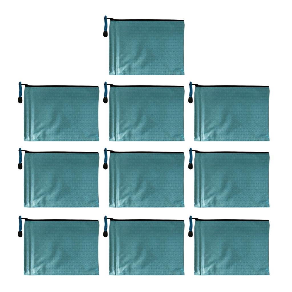 10Pcs Light Blue Plastic Zippered Document Folder File Bags Office Supplies