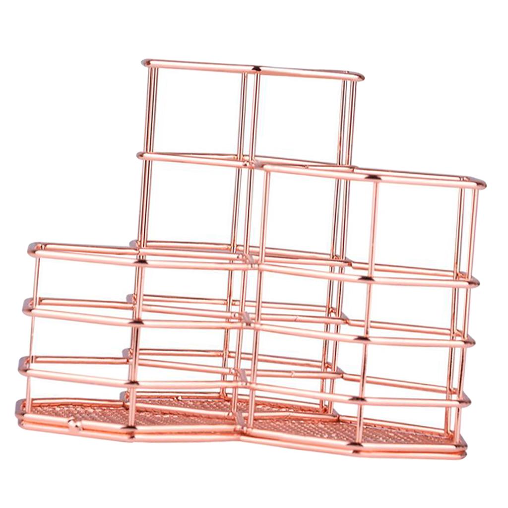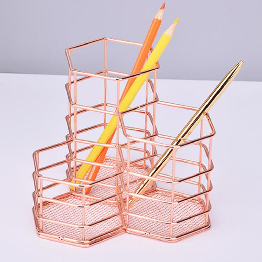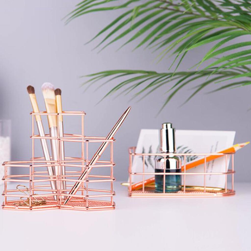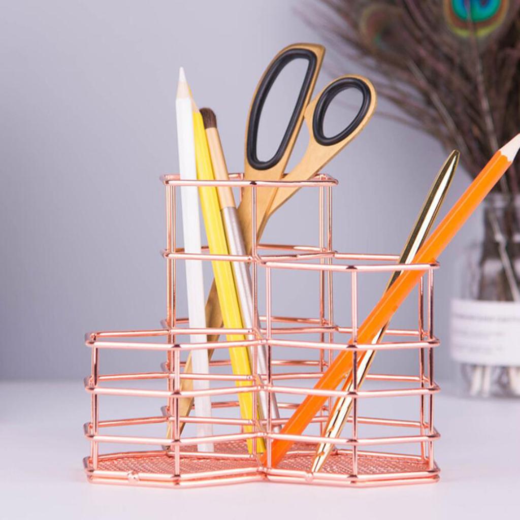 Wire Metal Desktop Pencil ,Rose Gold Pen Storage Basket Organizer