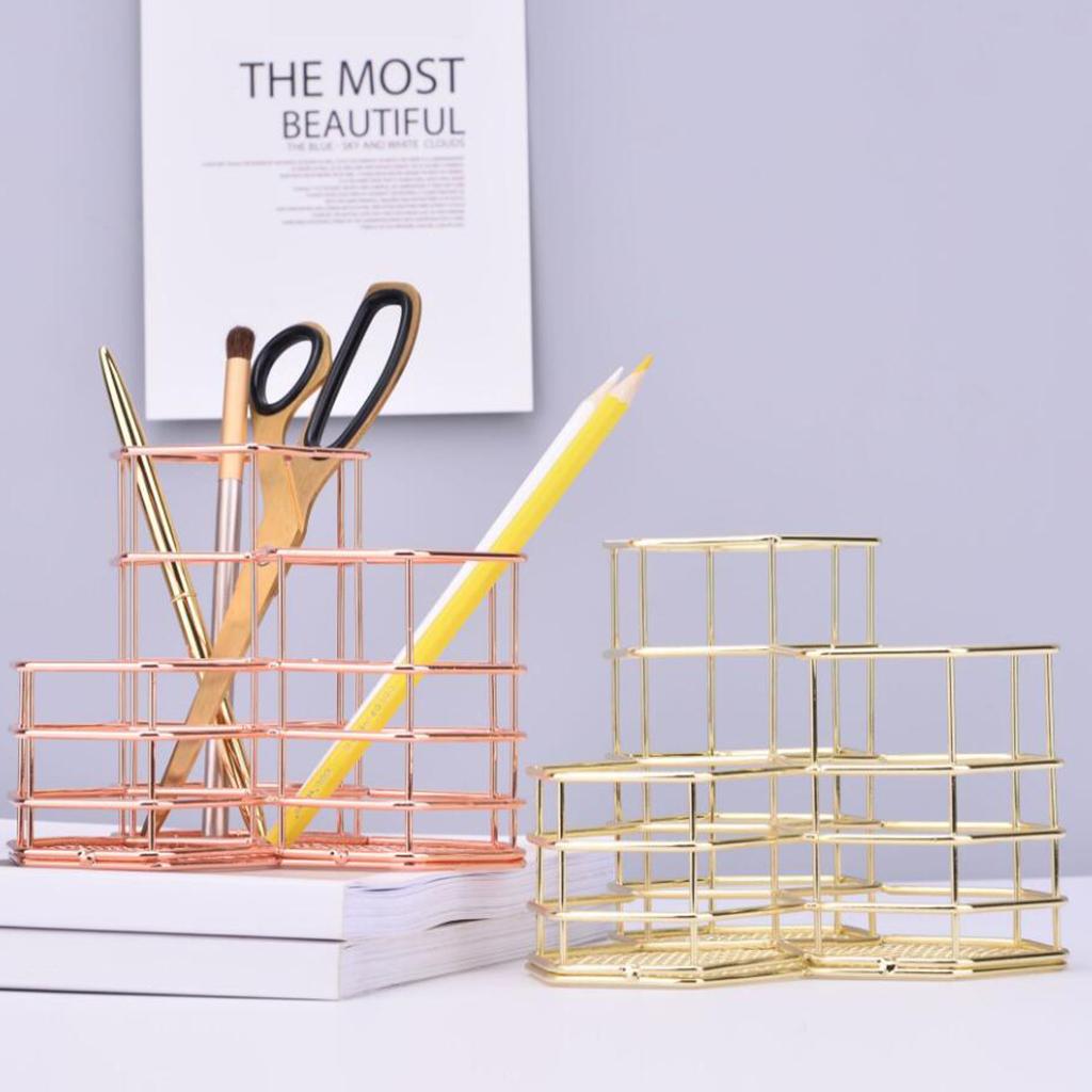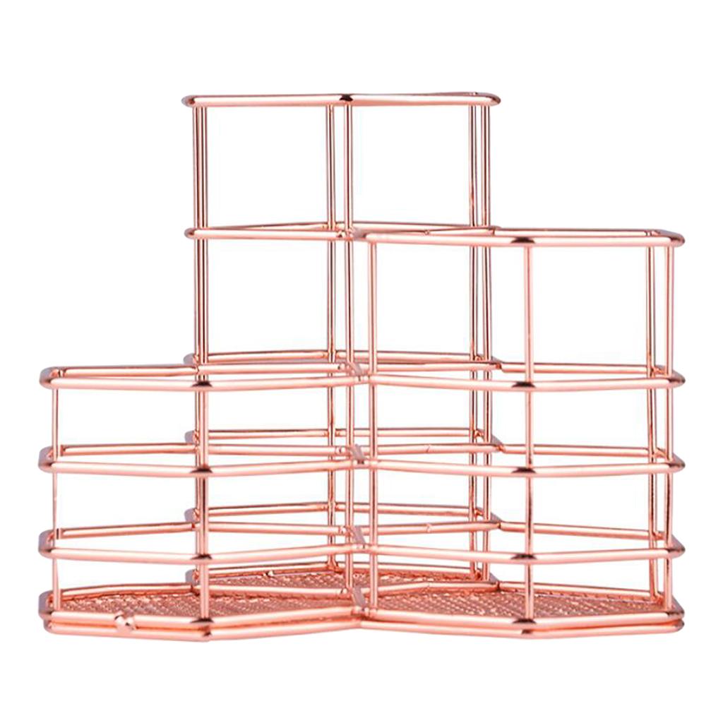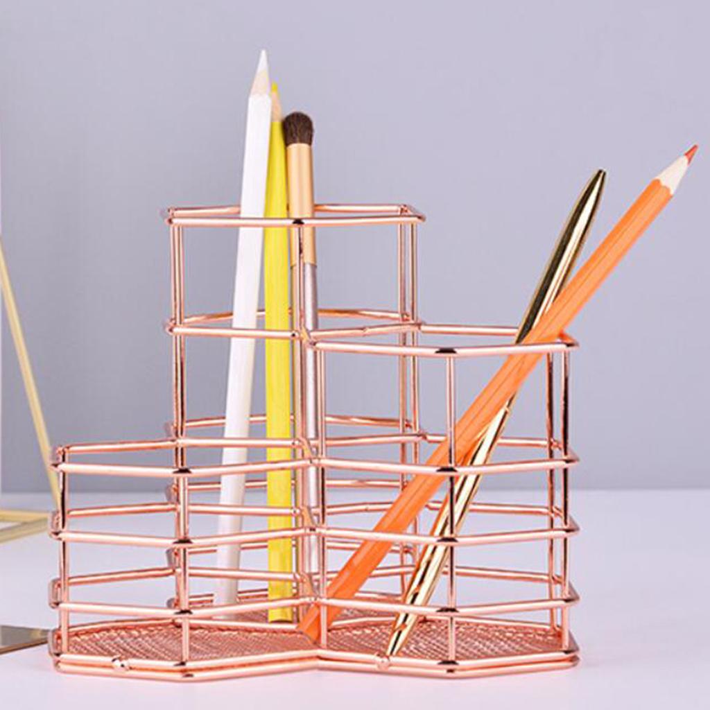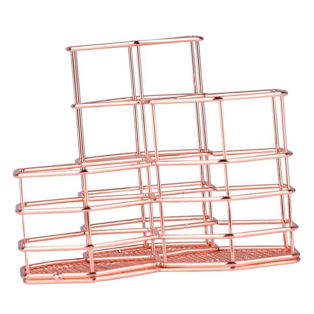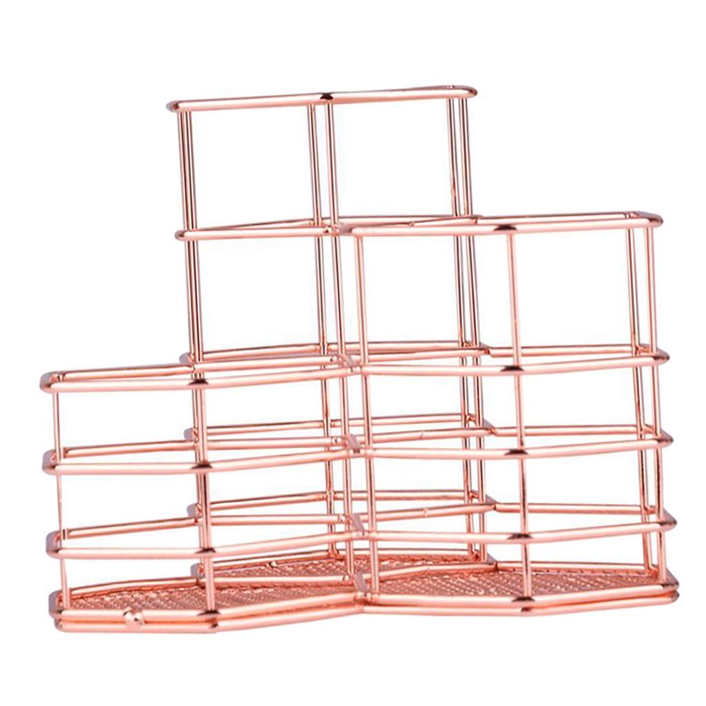 Wire Metal Desktop Pencil ,Rose Gold Pen Storage Basket Organizer