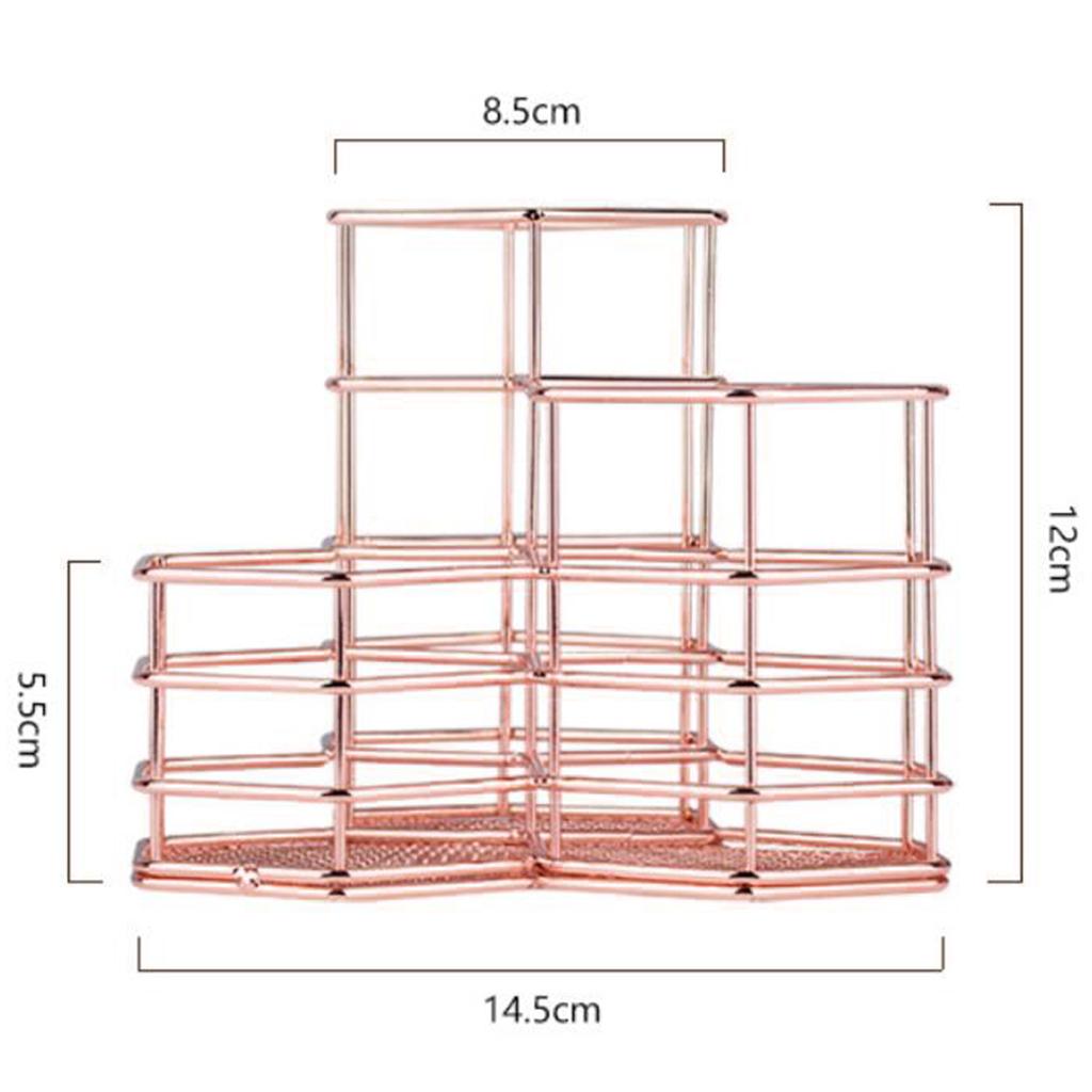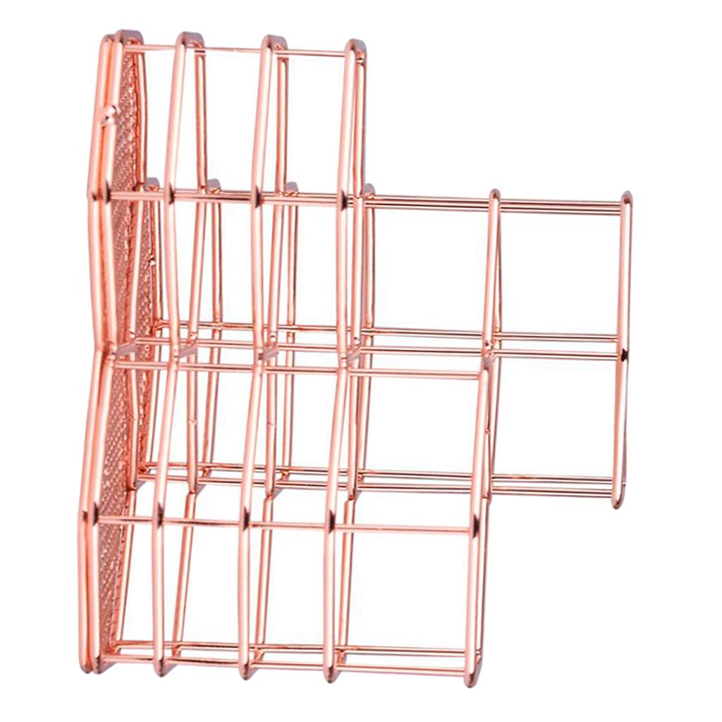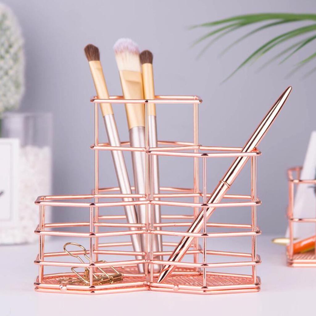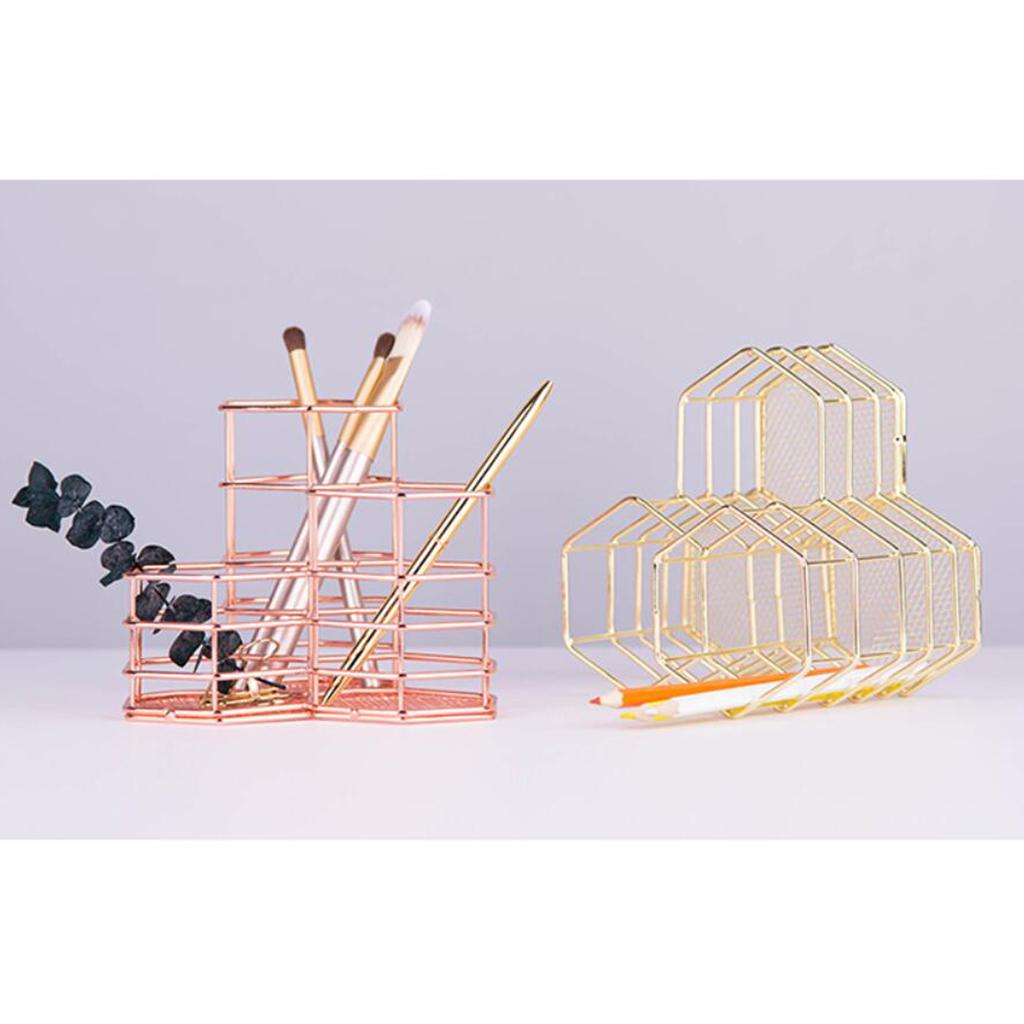 Wire Metal Desktop Pencil ,Rose Gold Pen Storage Basket Organizer