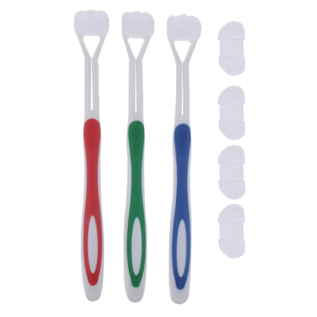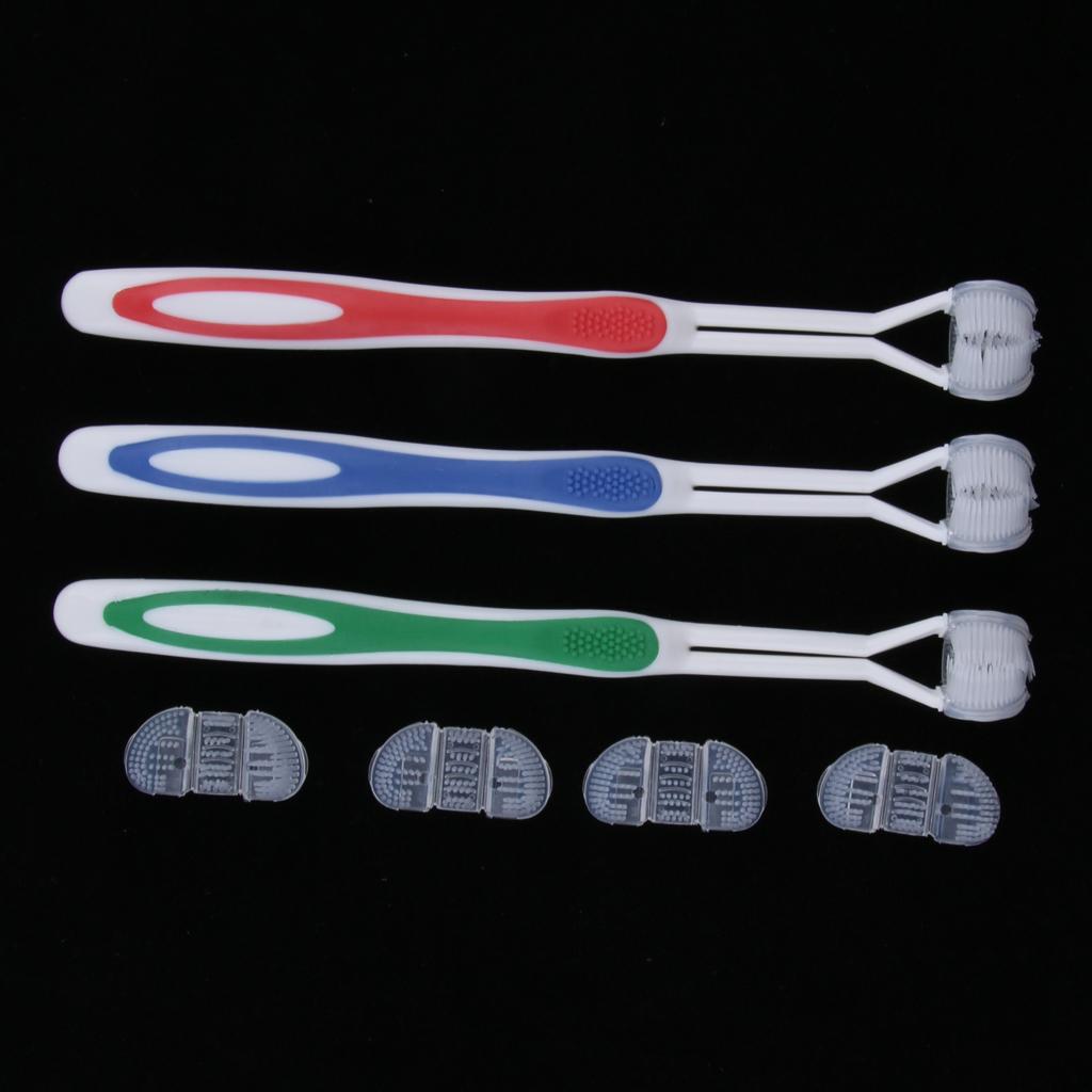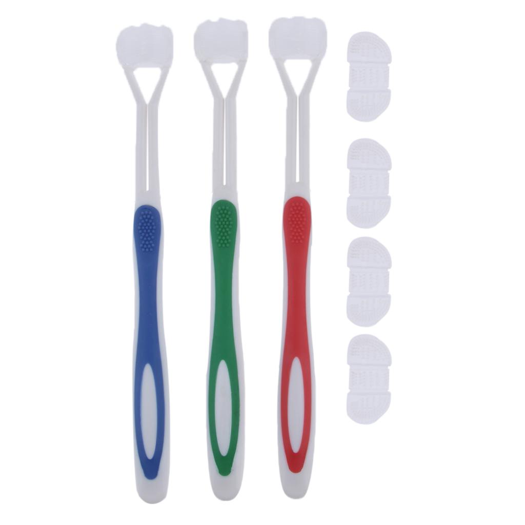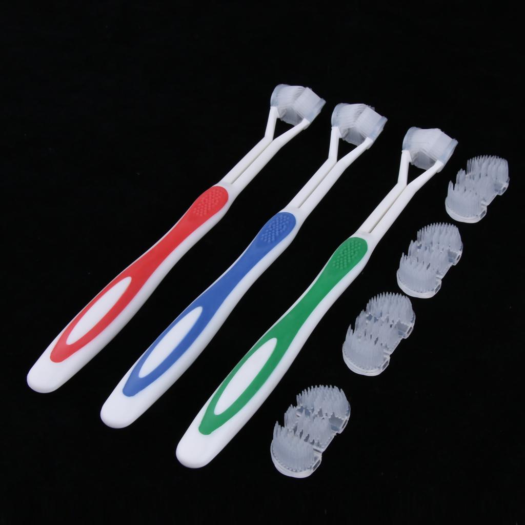 Pack of 3pcs, 3 Sided Deep Clean Whitening Soft Toothbrushes with 4 Brush Heads Replacement