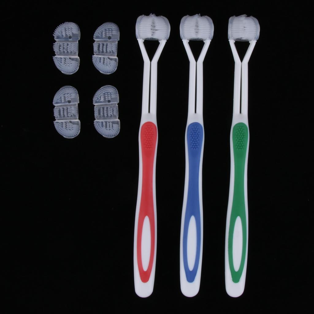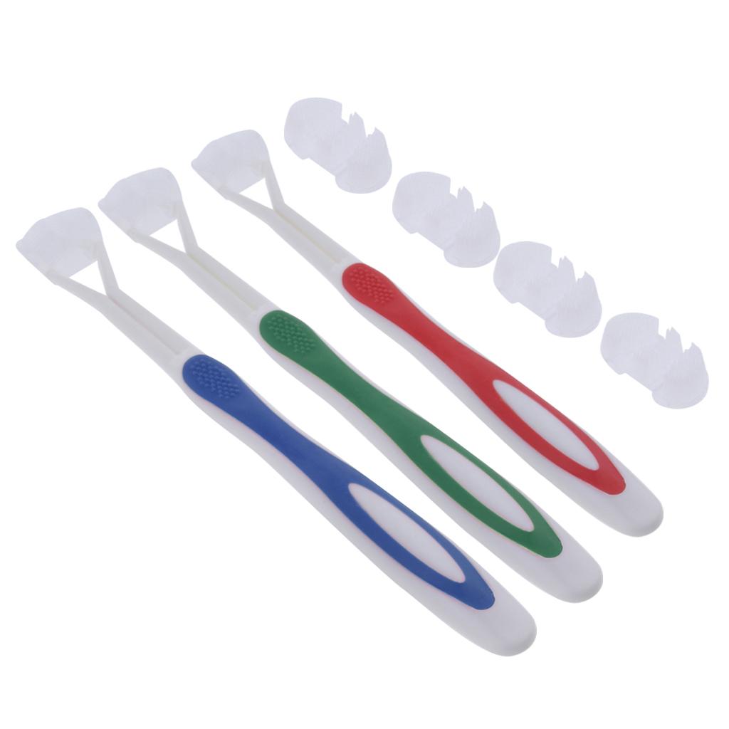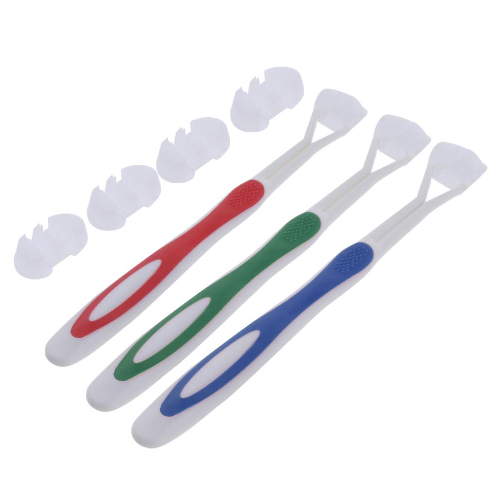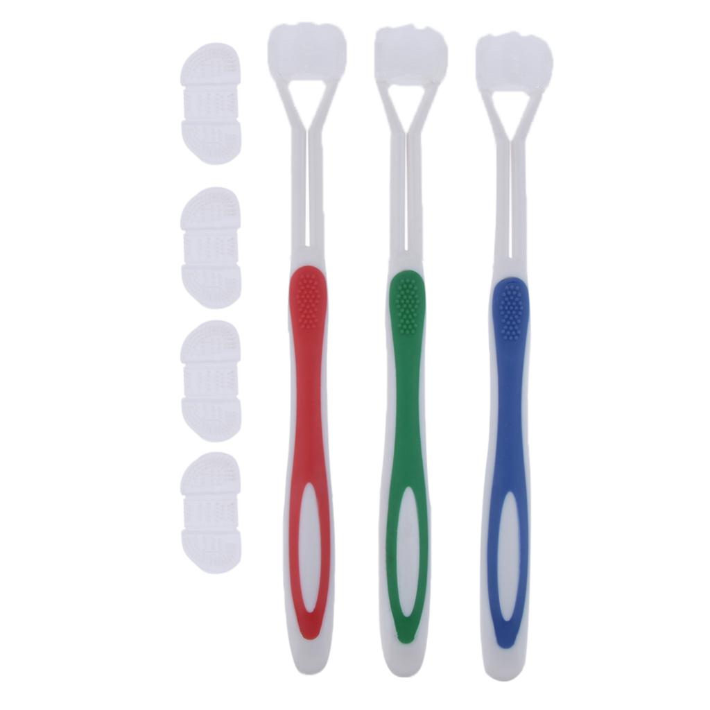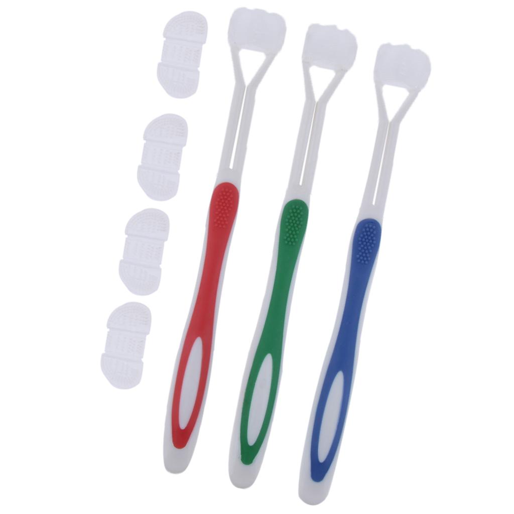 Pack of 3pcs, 3 Sided Deep Clean Whitening Soft Toothbrushes with 4 Brush Heads Replacement