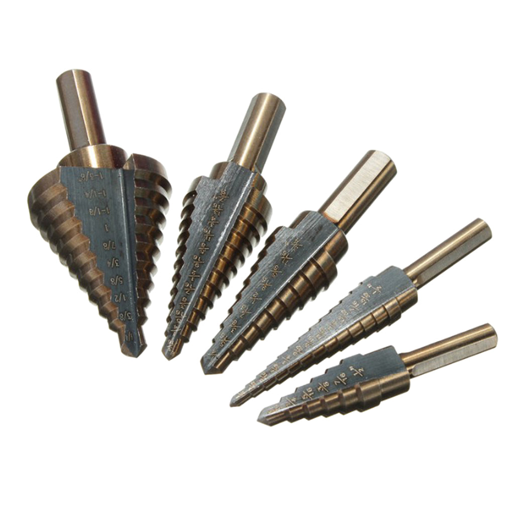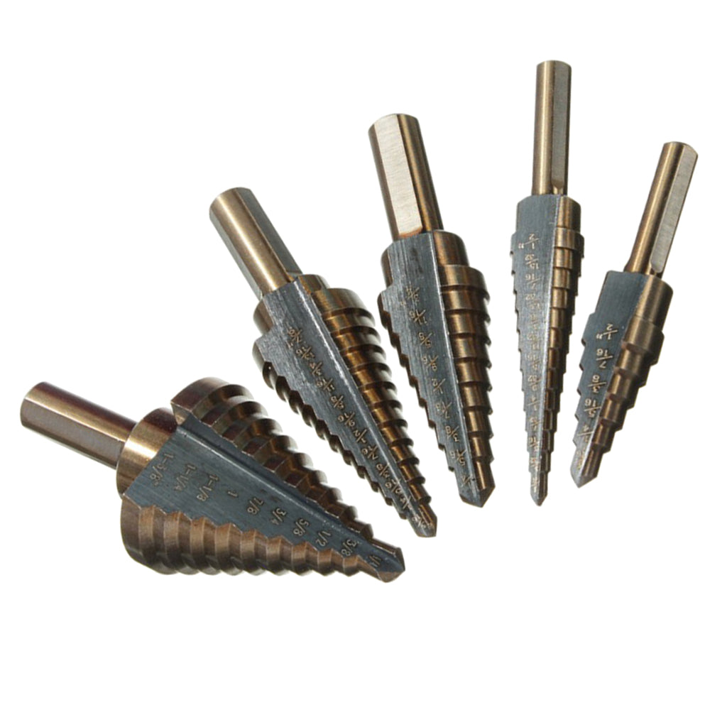 5pc inch black and yellow triangle handle high speed steel step drill woodworking hole opener set