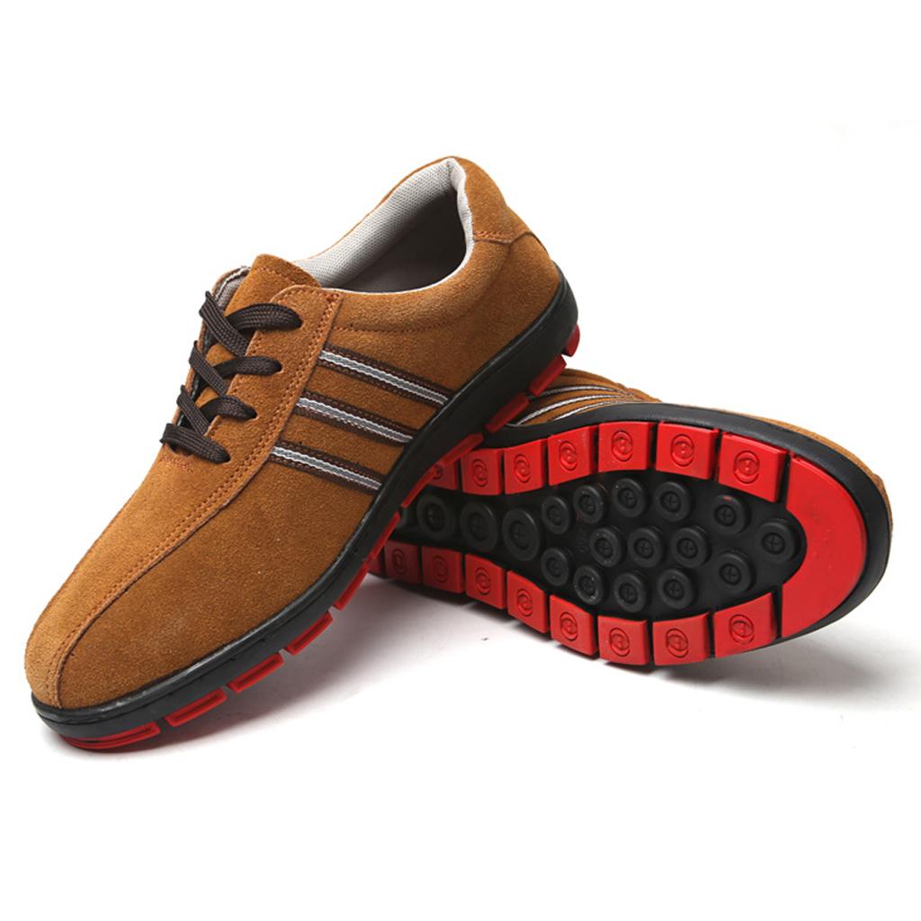 Steel toe work boots for toe protection, steel plate midsole for shoe stability.