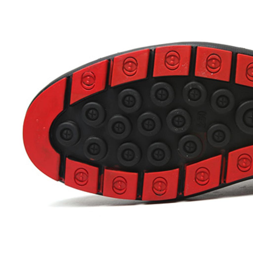 Non-slip and abrasion resistant rubber sole.