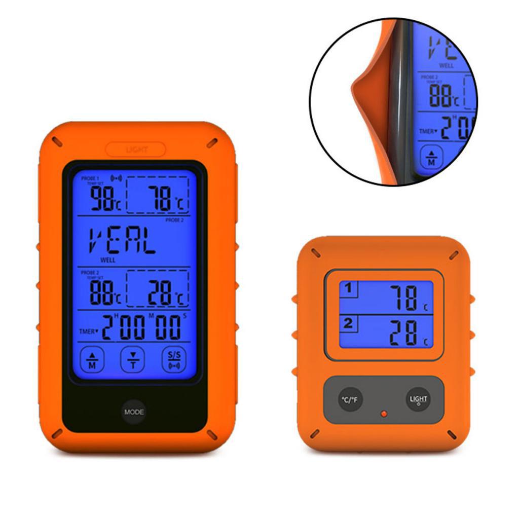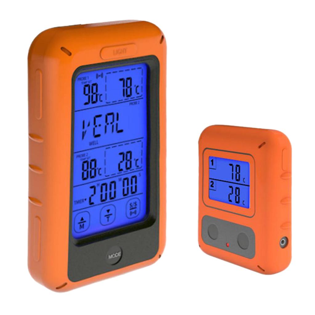 Large LCD with backlight clearly displays temperature, taste, meat types. It comes with two probes, which enable you to test 2 kinds of meats at the same time.