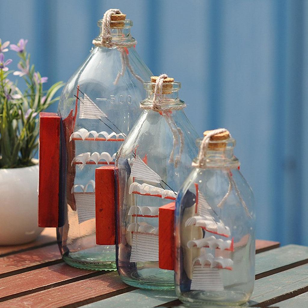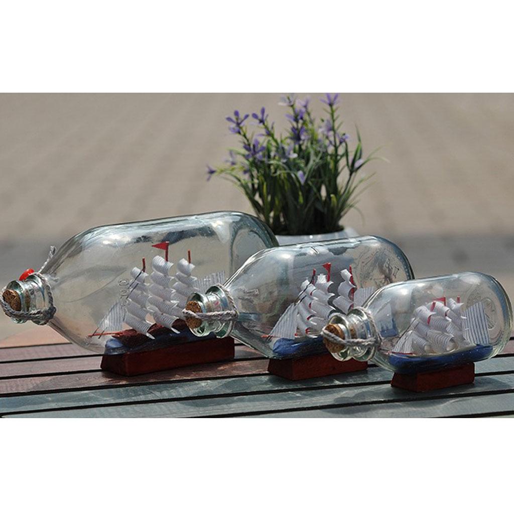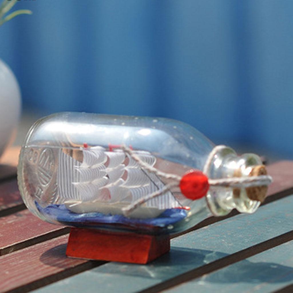 Glass Pirate Ship Sailing Boat Wishing Drift Bottle Home Office Decor