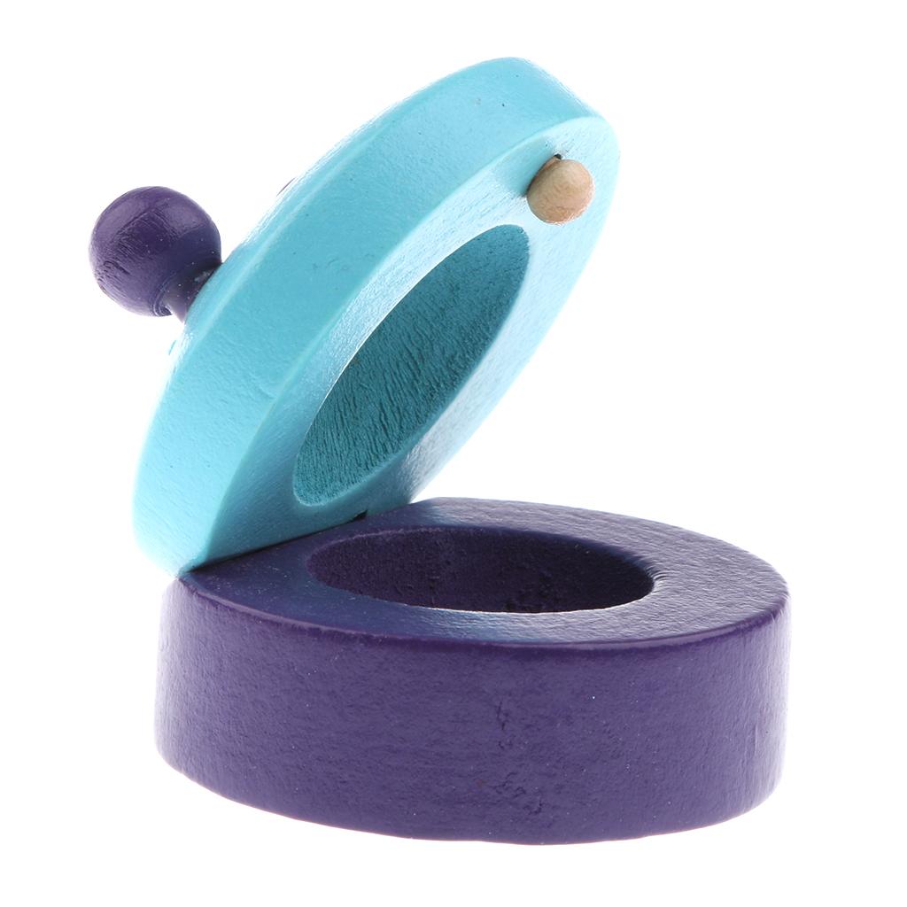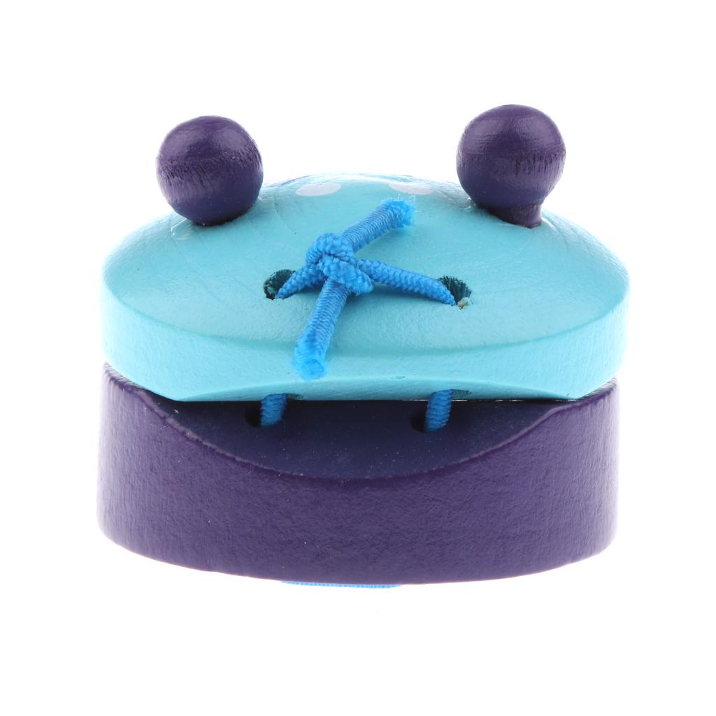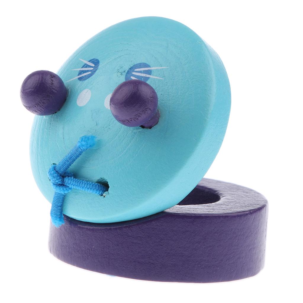 Cartoon Castanet Wooden Hand Clapper Musical Instrument Toy for Kids Blue
