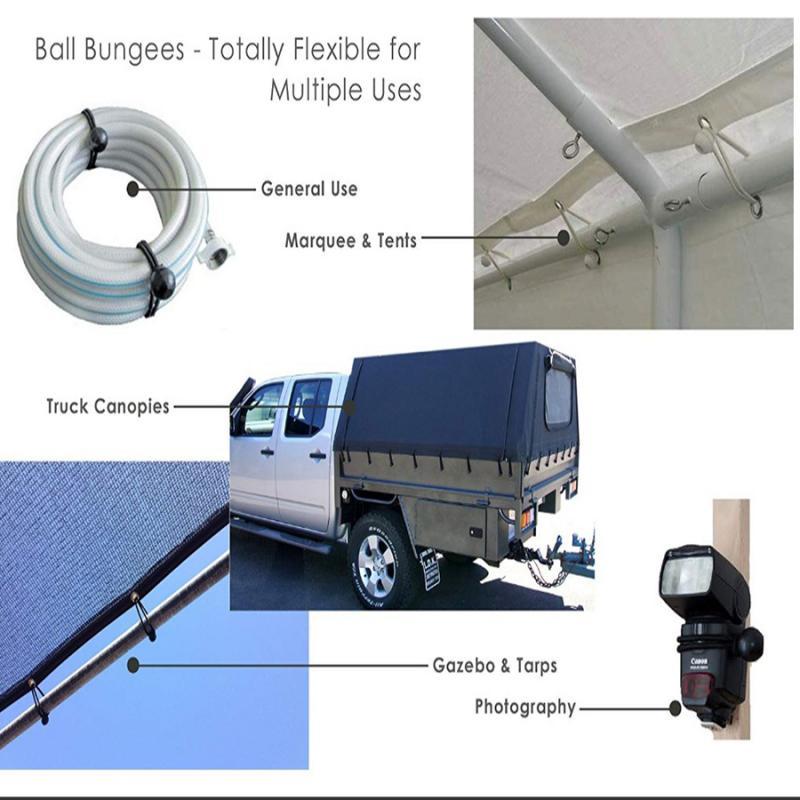 Bungee is made of high quality rubber, UV protection, long lasting with great stretch and recovery performance