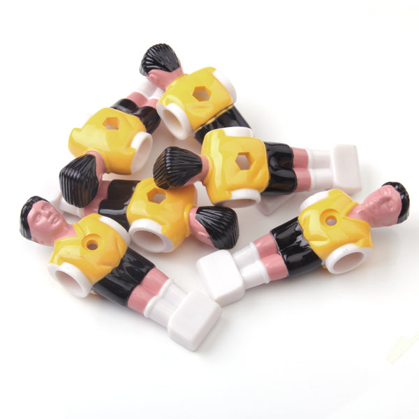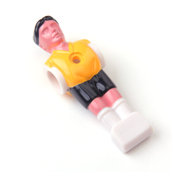 This foosball man will fit any table that uses standard 5/8" sized foosball rods. This foosball men features tournament style. The nut and bolt used to attach each foosball man to a foosball rod are not included.