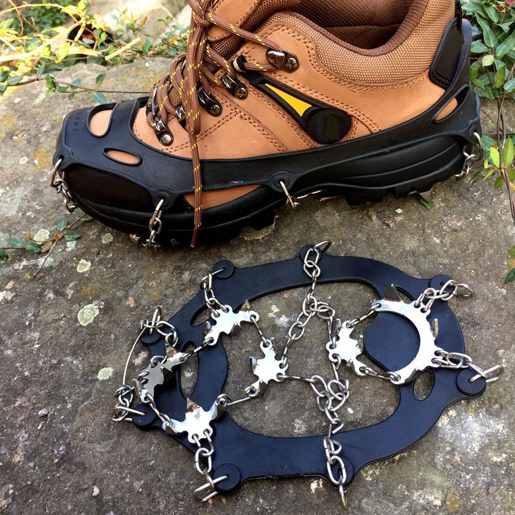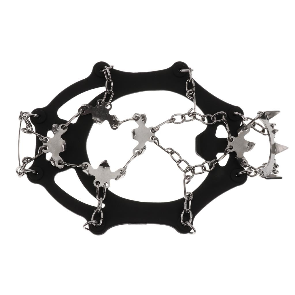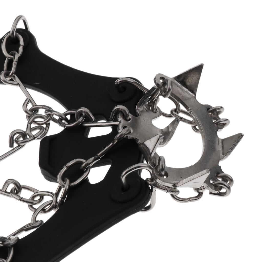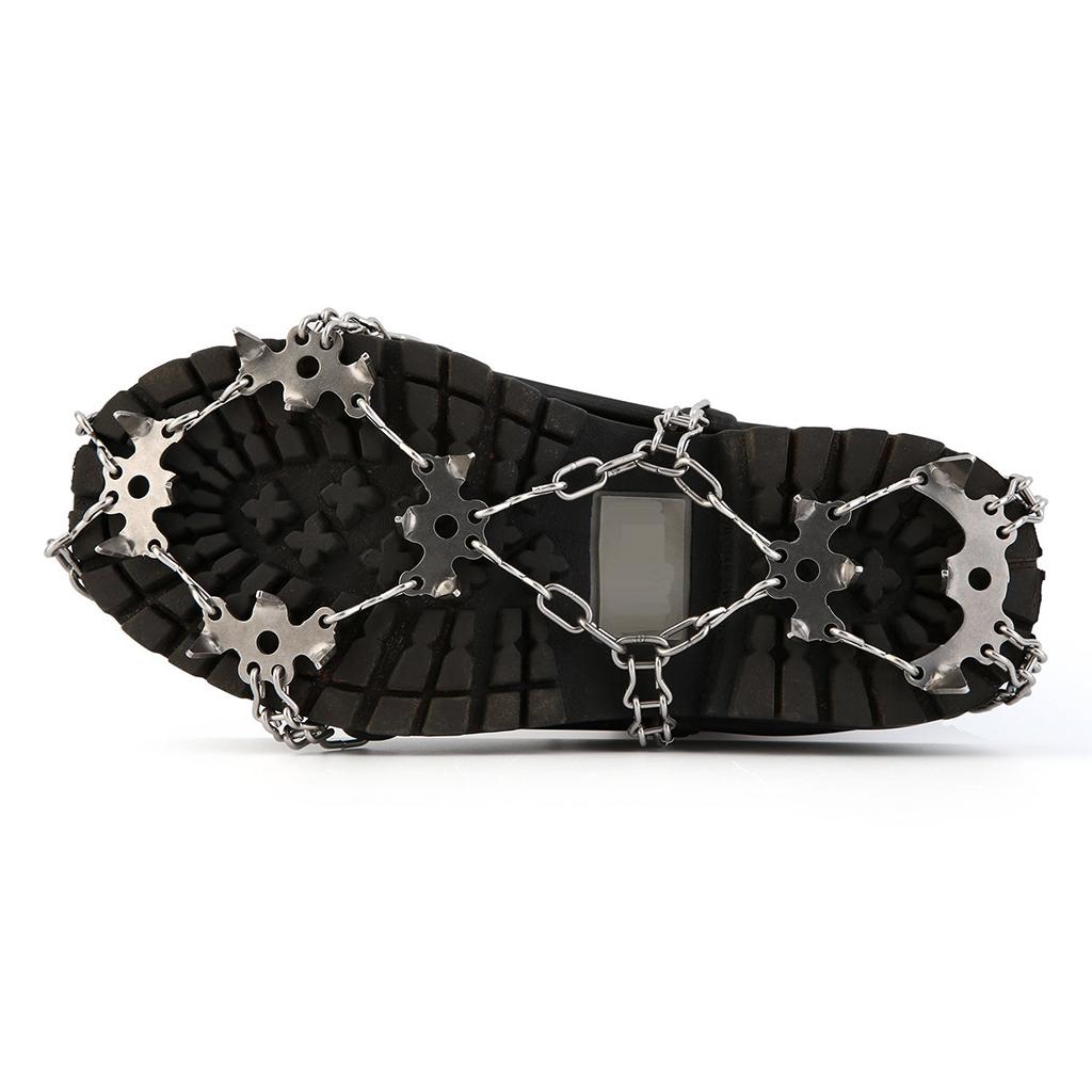 18 teeth stainless steel spikes can dig into varieties terrain,the steel chain can prevent move side-to-side, keep you safe and injury-free