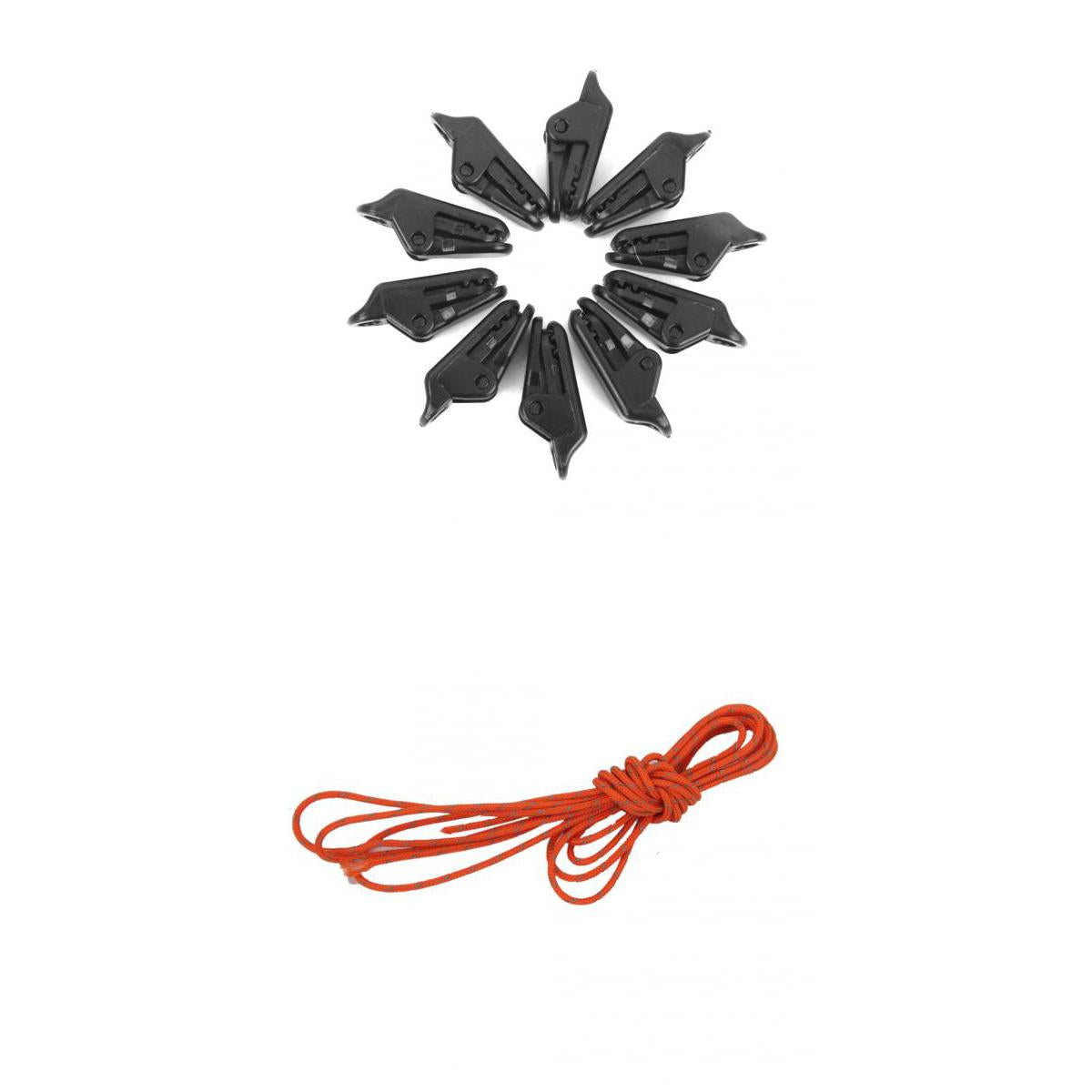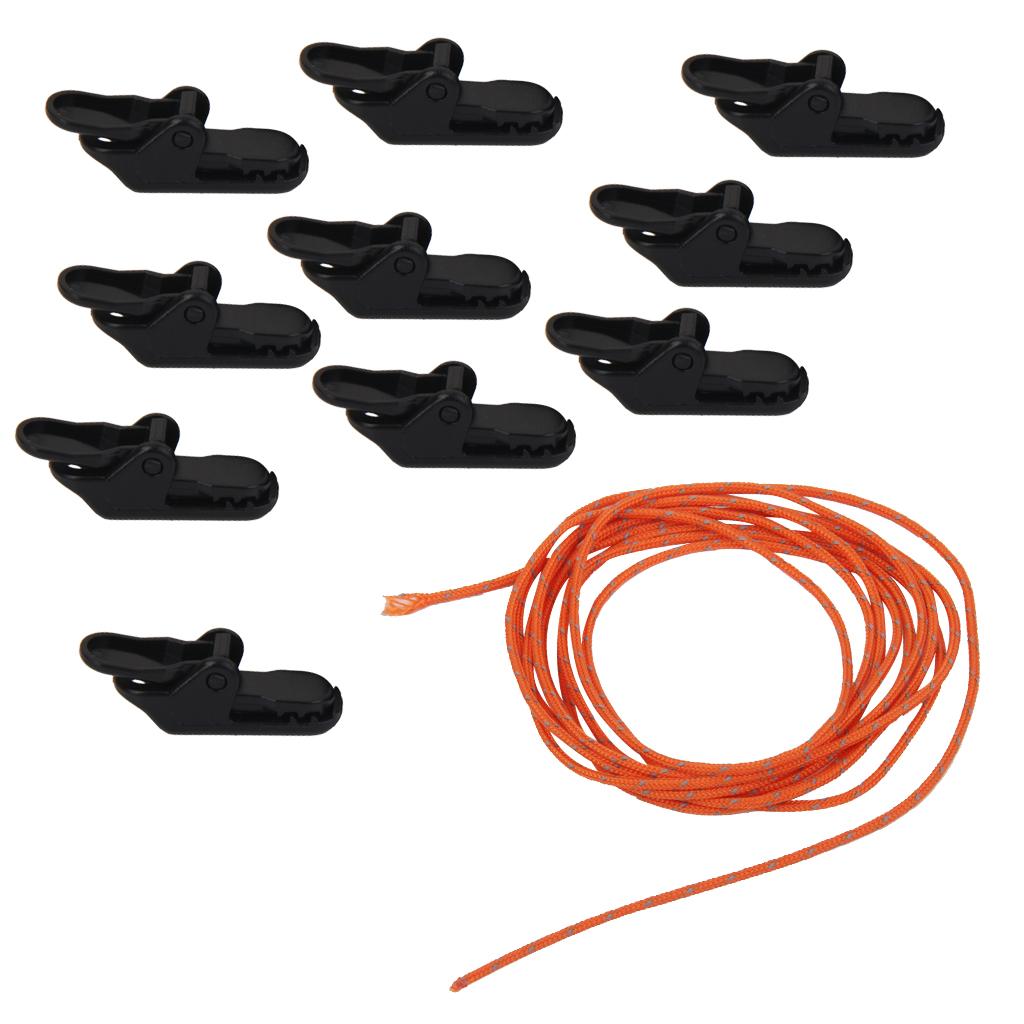 10 Pieces Tent Clamp + 20m Tent Guy Line Rope Set.