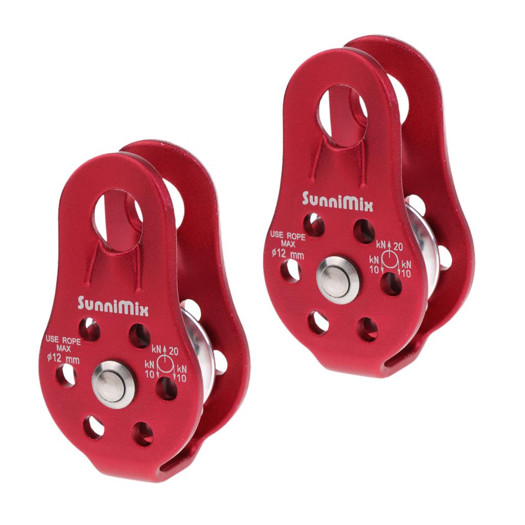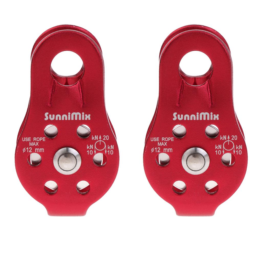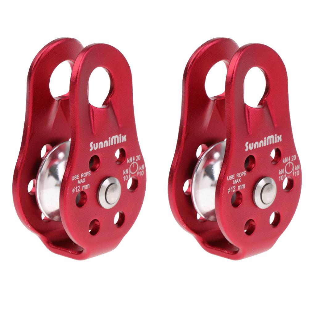 2 Pieces Red Lightweight 20KN General Purpose Fixed Ball Bearing Climbing Rope Pulley for Outdoor Hauling Rigging Lifting Rescue