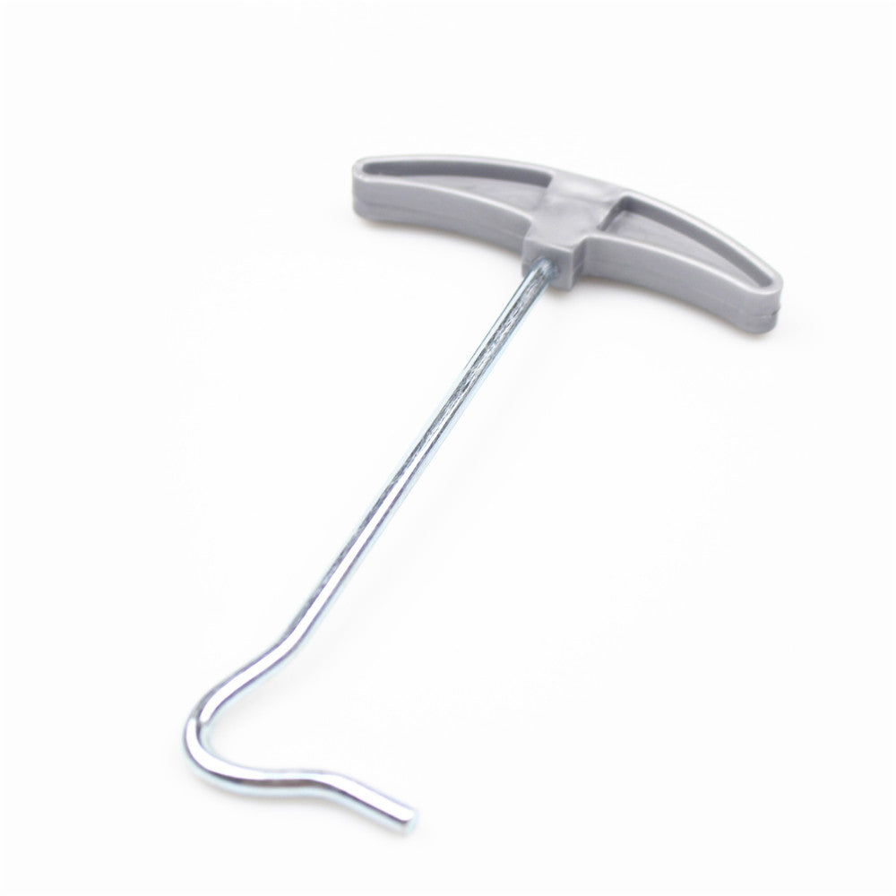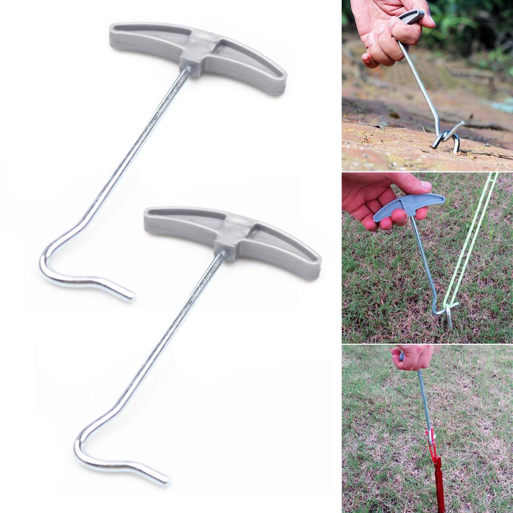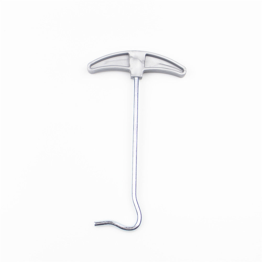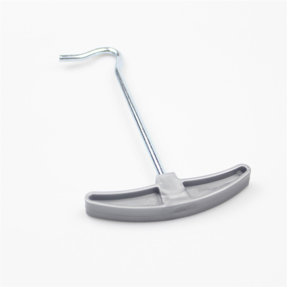 Plastic Handle with Steel Hook arm with sufficient length to make removing pegs easier especially in harder terrain