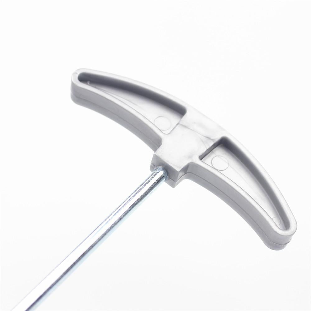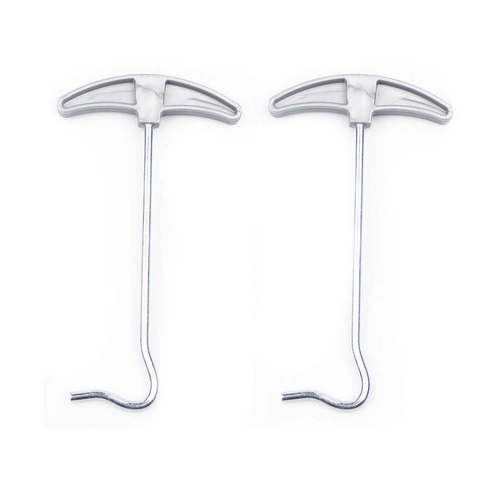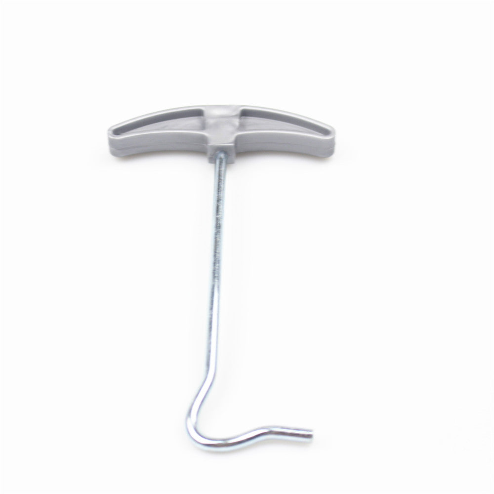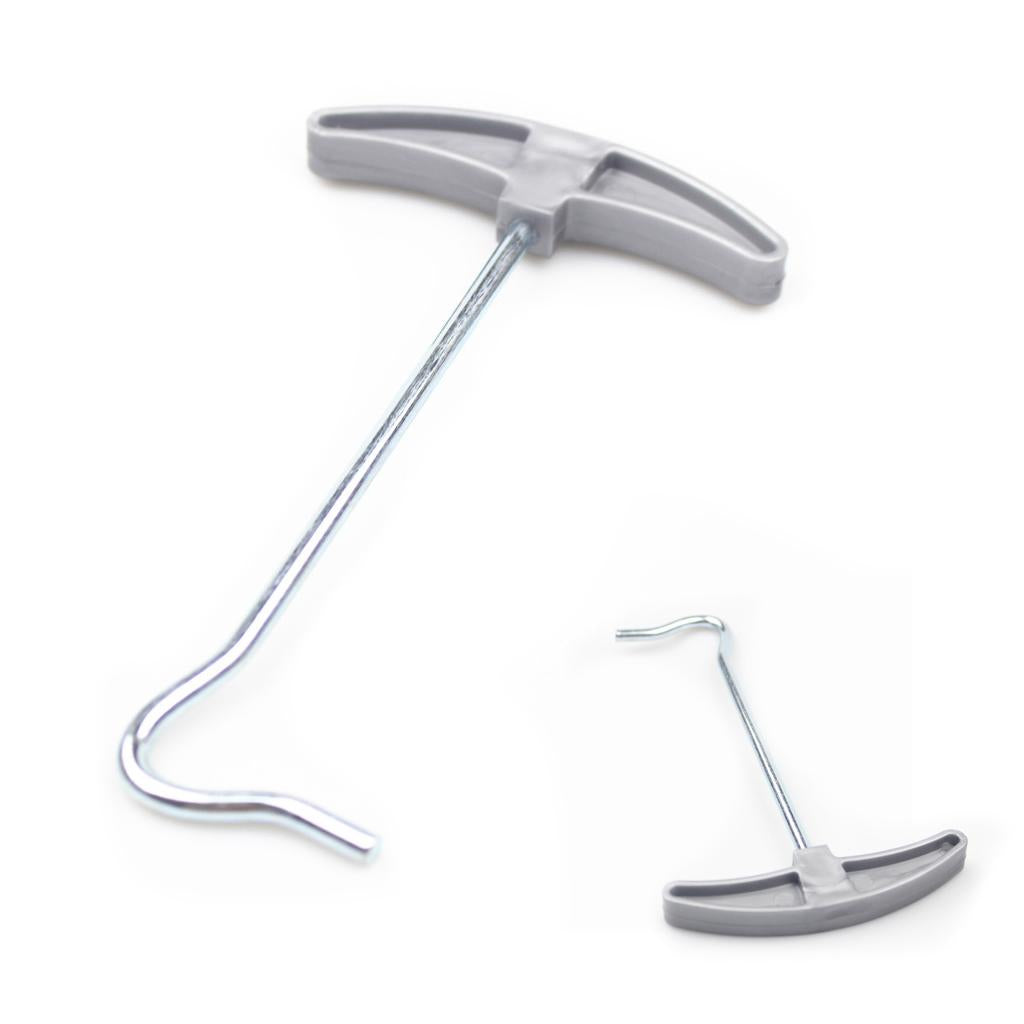 Plastic Handle with Steel Hook arm with sufficient length to make removing pegs easier especially in harder terrain