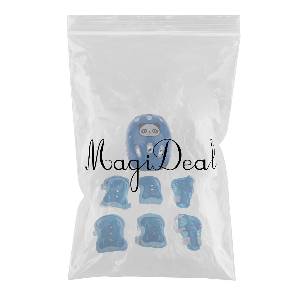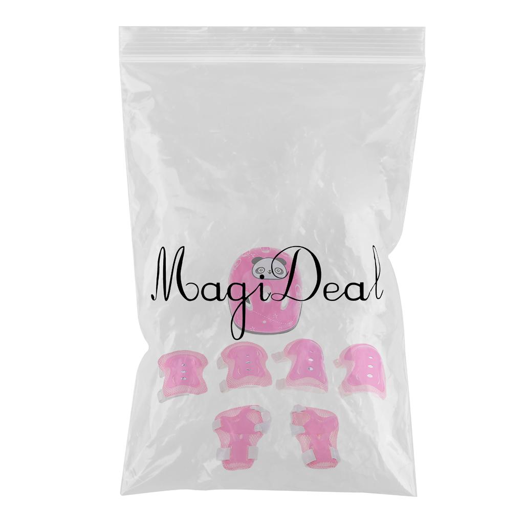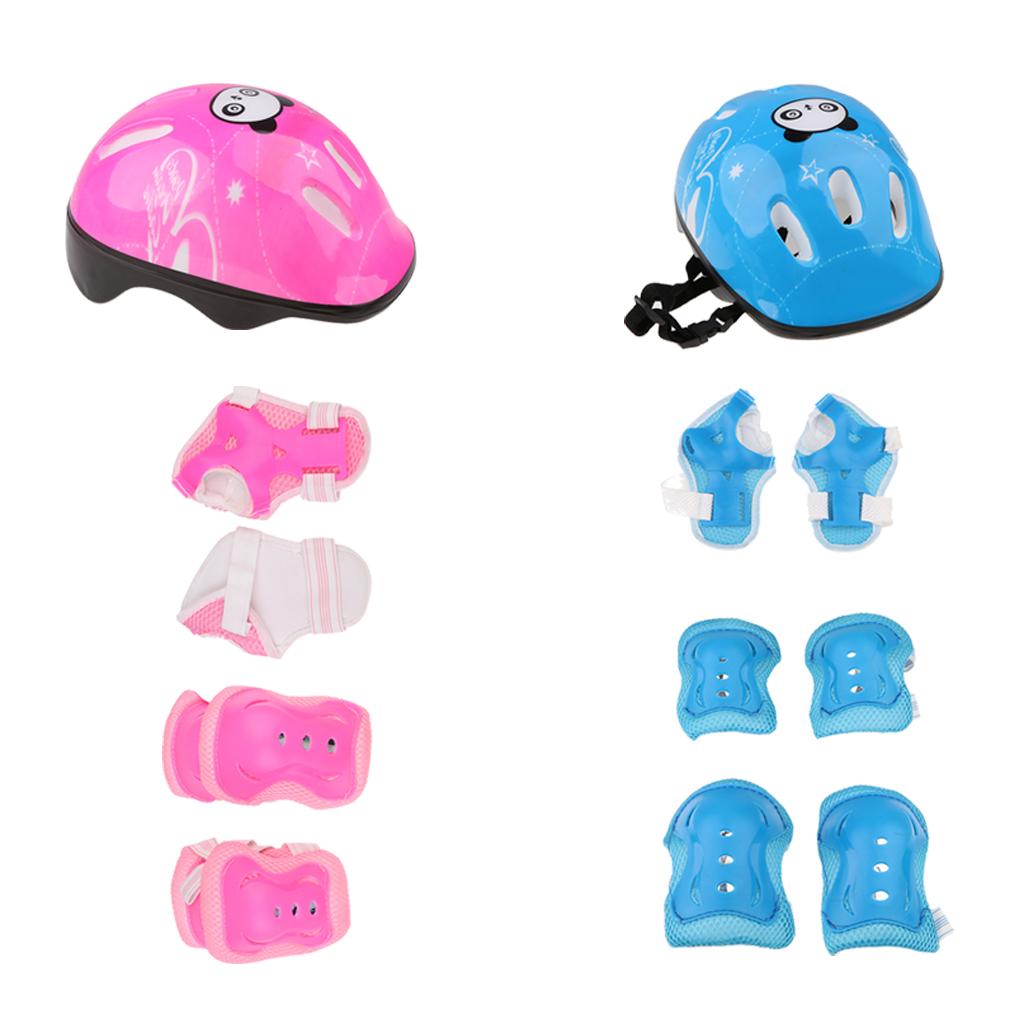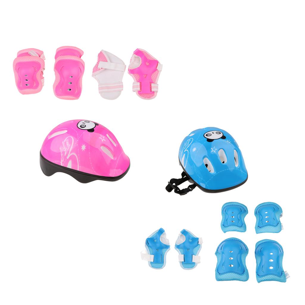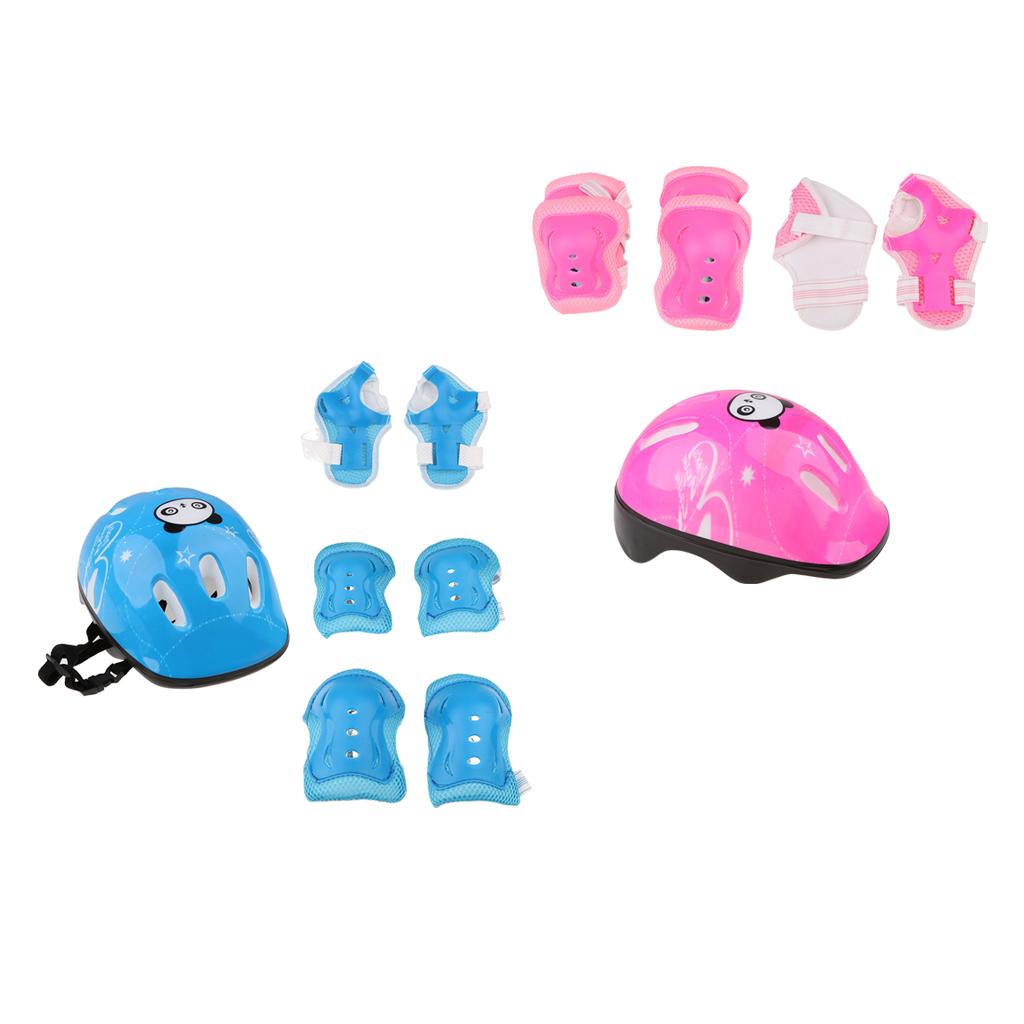 7 Pieces protective helmet, elbow, knee and wrist pad set; 2 Sets, Pink and Blue