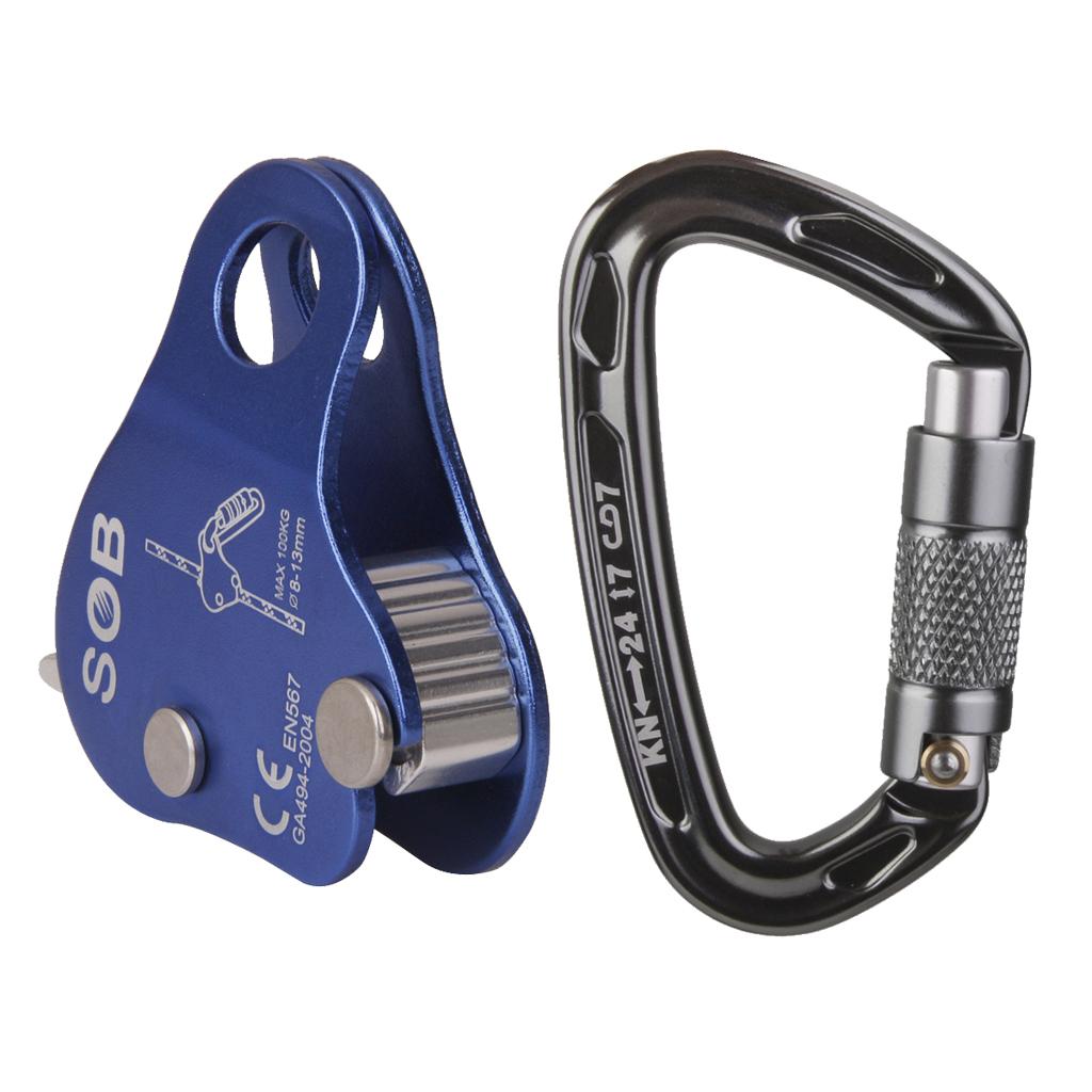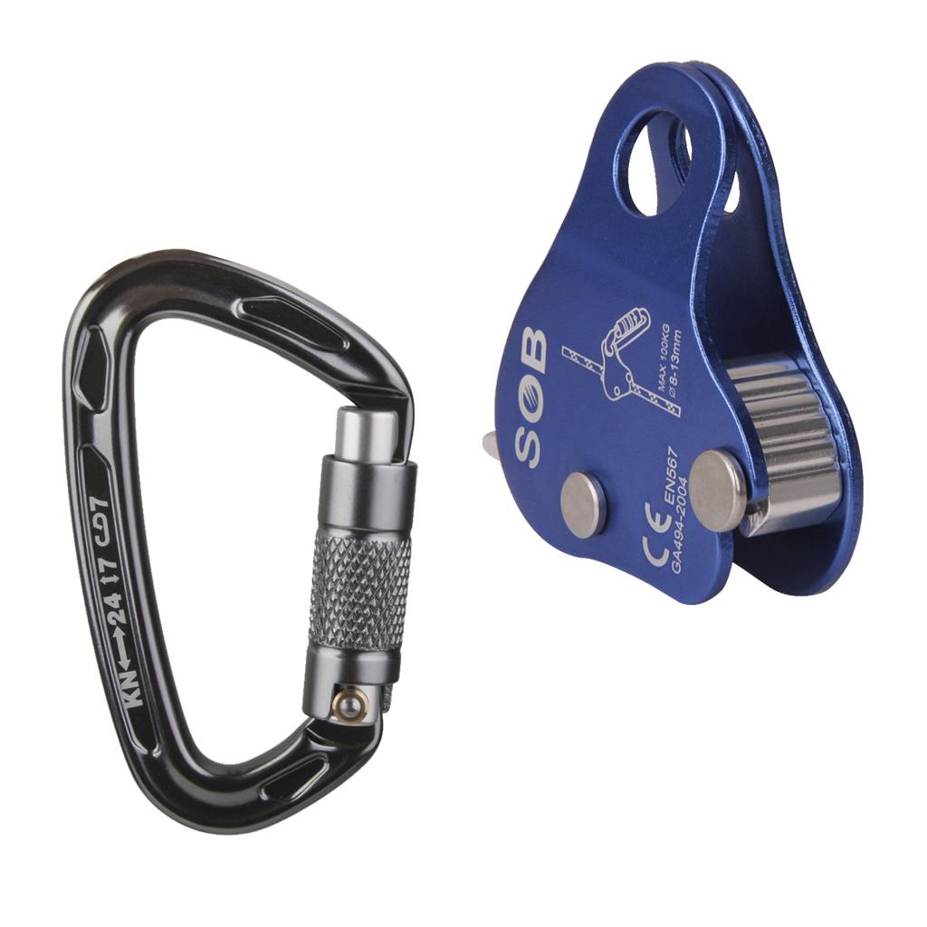 24KN Self Locking Carabiner + Aluminum Rope Grab Climbing Rappelling Gear