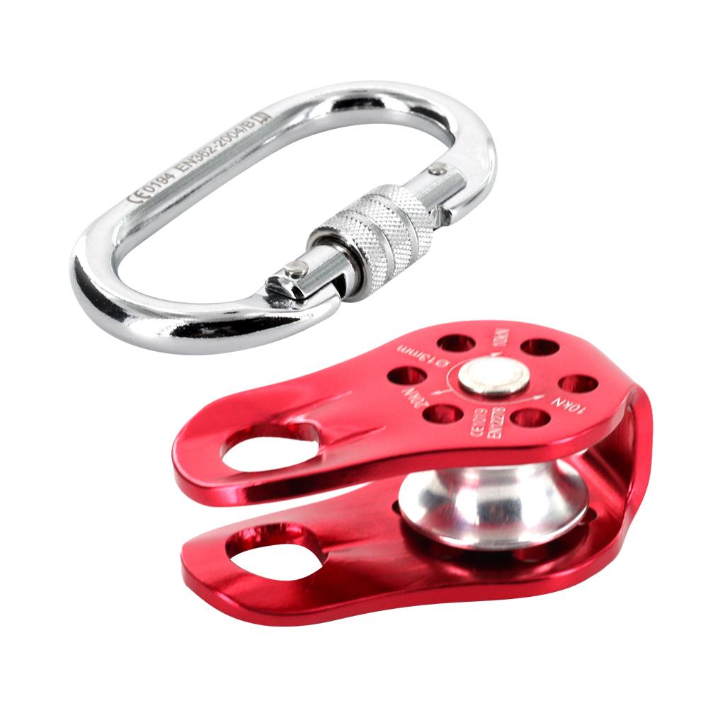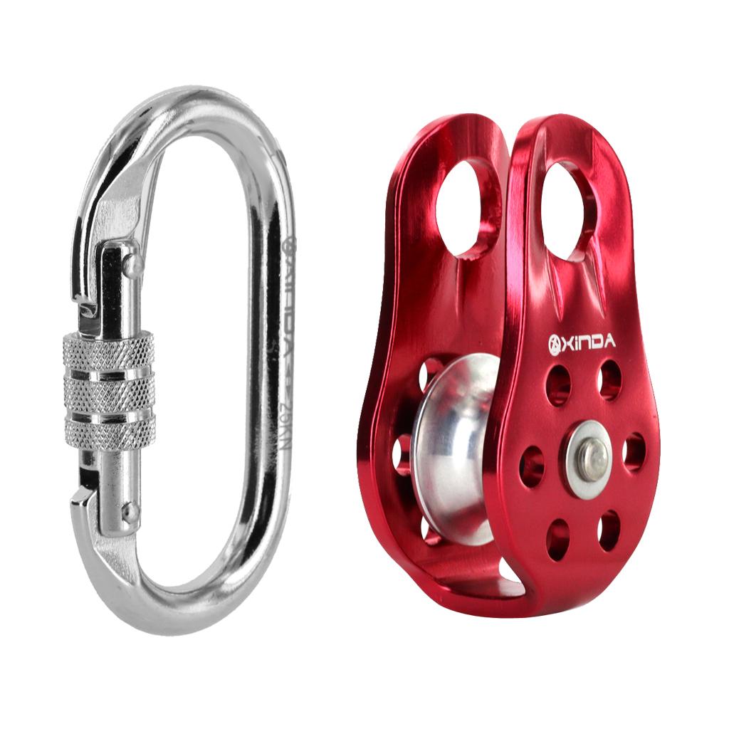 25KN Screw Locking Carabiner + Rock Climbing Rappelling Fixed Rope Pulley Mountaineering Equipment