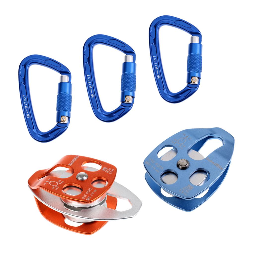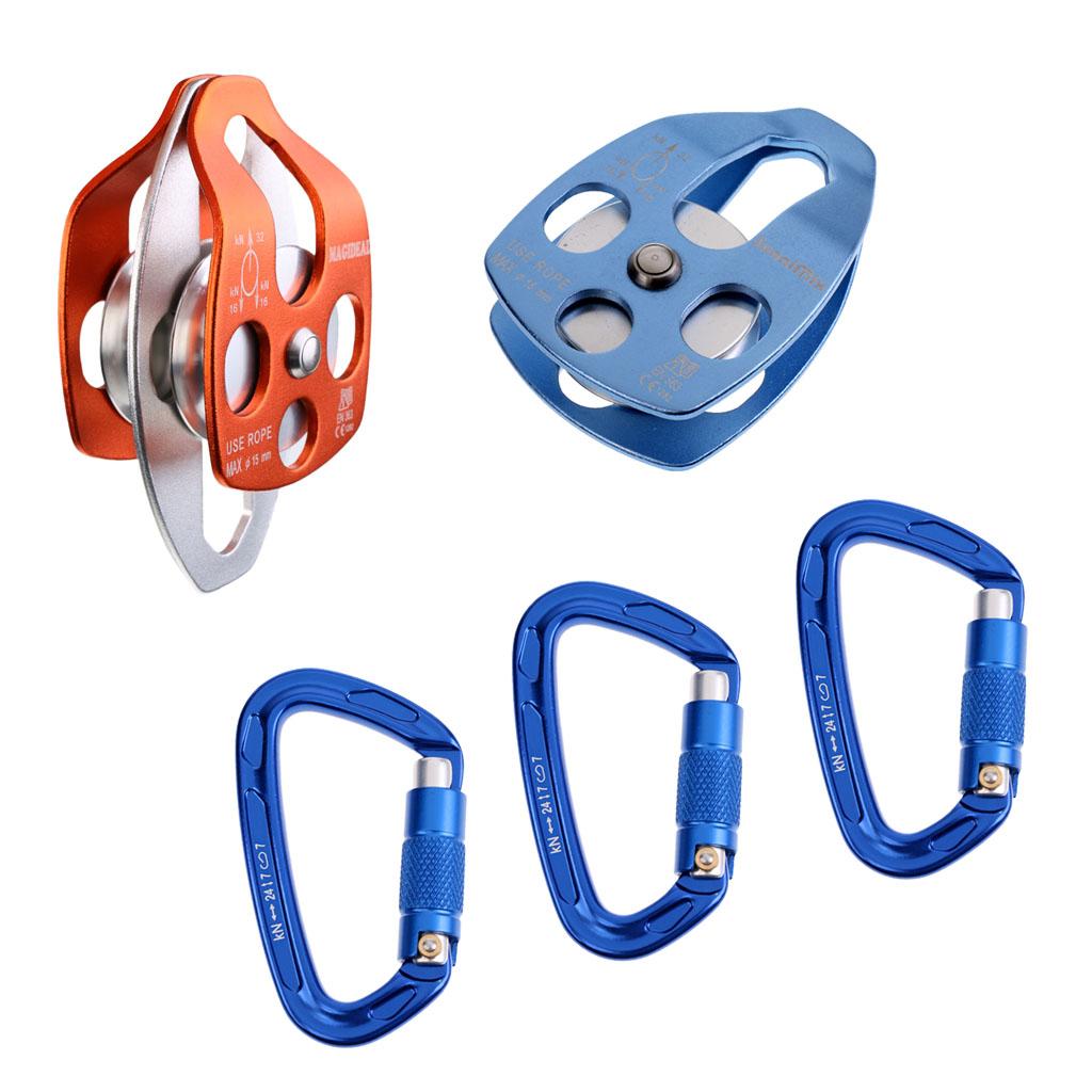 1 Piece 32KN double pulley + 1 piece 32KN single pulley + 3 pieces 24KN self locking carabiner