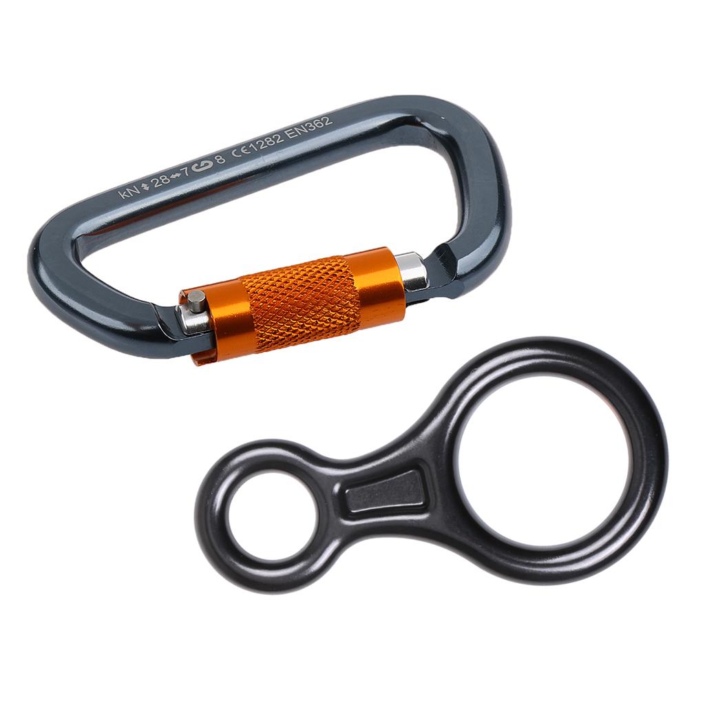 35KN Figure 8 Belay Device Rappelling Ring + 28KN Self Locking Carabiner Mountaineering Rock Climbing Safety Rescue Gear