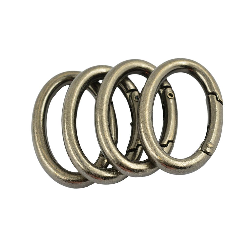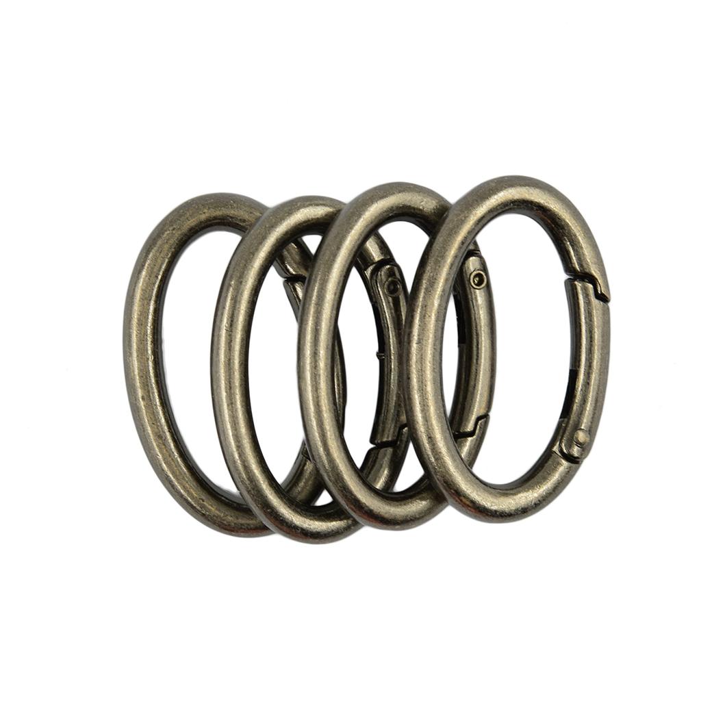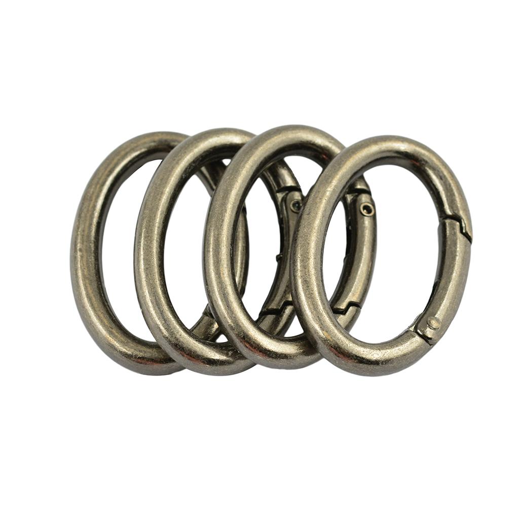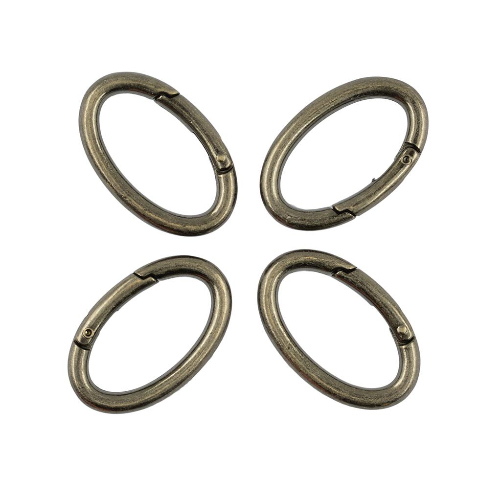4pcs Antique Silver Oval Carabiner Spring Snap Clip Hook Keychain Hiking