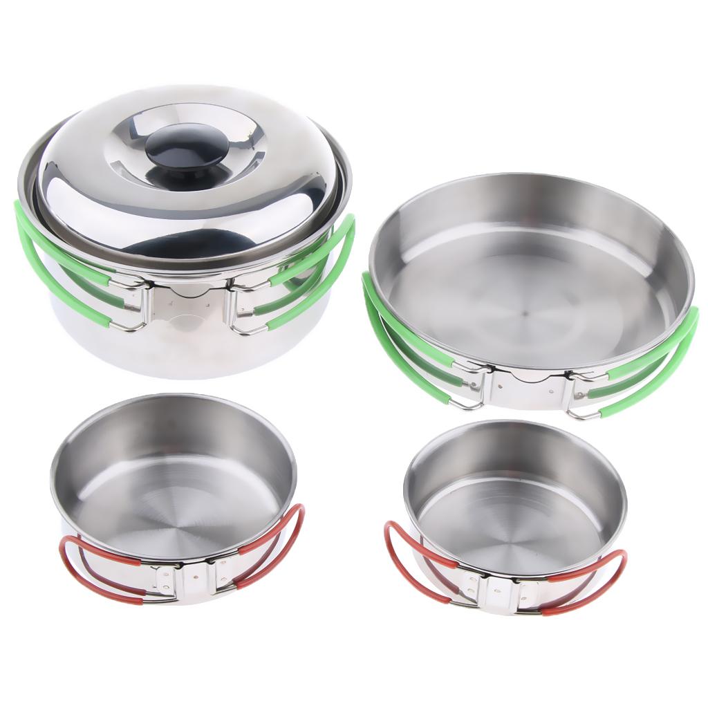 Outdoor portable cookware set for camping, hiking, backpacking, fishing, picnic, BBQ, backyard, etc.