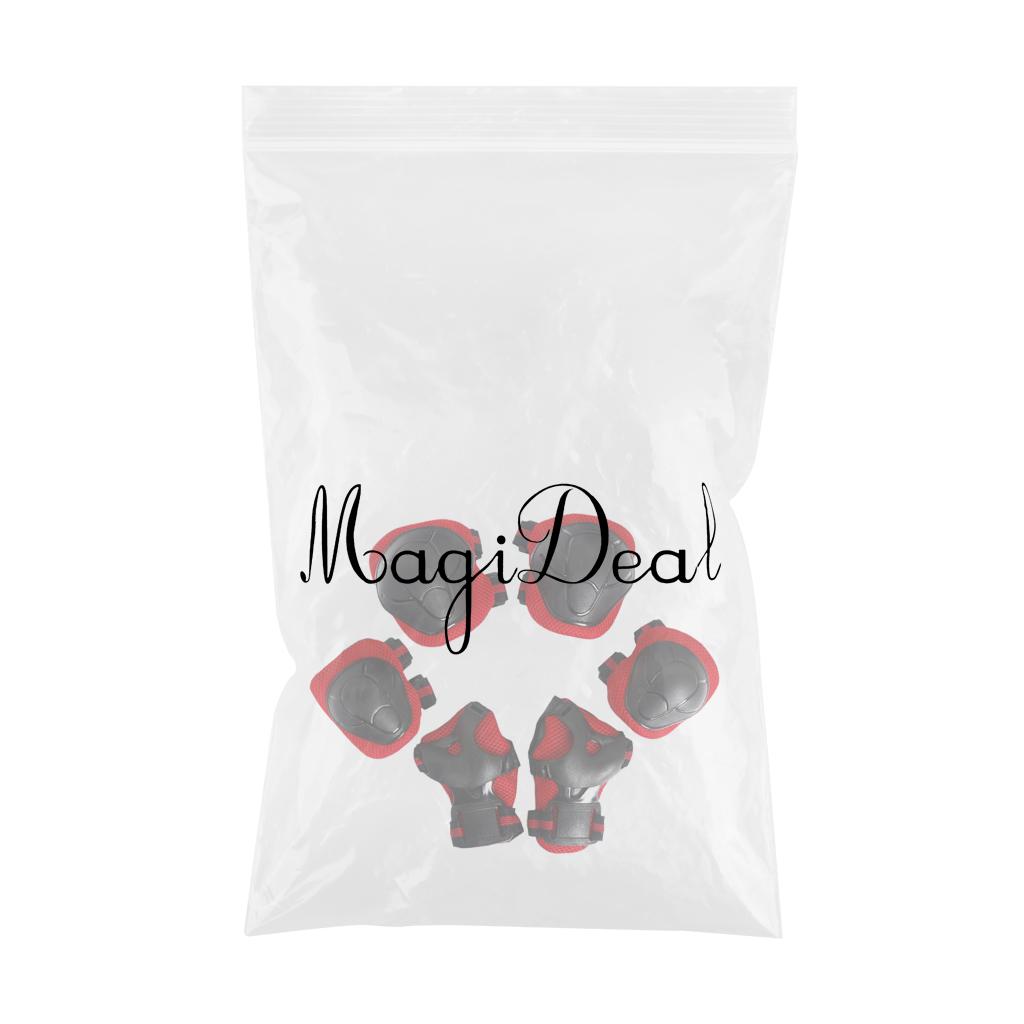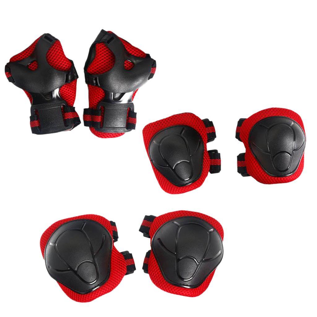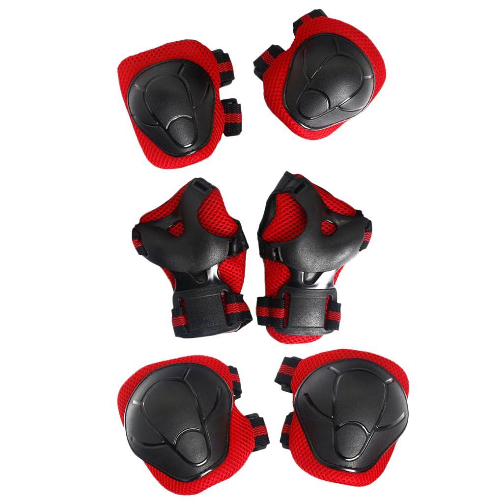 6 Pcs Kid Child Roller Skating Bicycle Helmet Knee Wrist Guard Elbow Pad Red