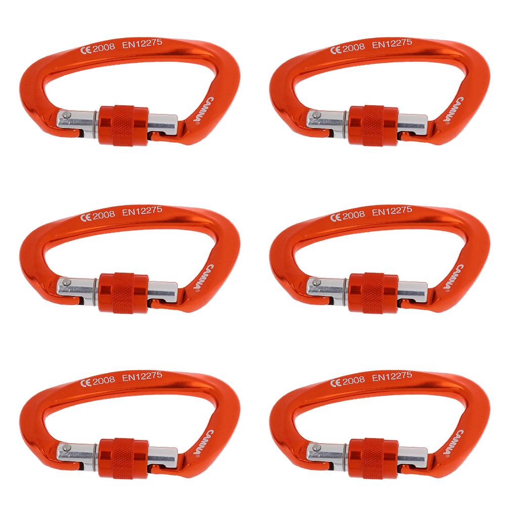 6 Pieces 25KN Screw Lock Carabiner Rock Tree Climbing Rescue Hammock Hook