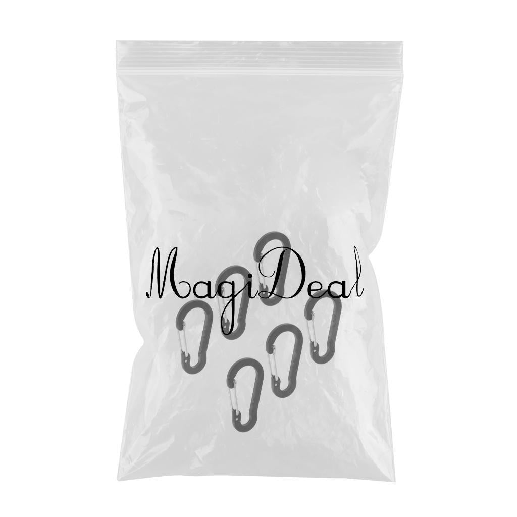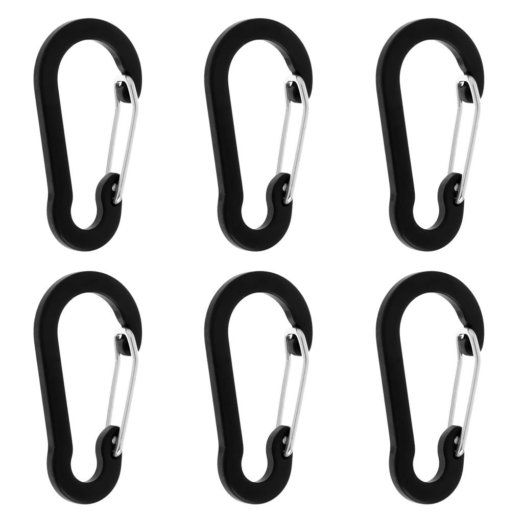 6 Pieces Aluminum D-Ring Carabiner Clip Spring Snap Hook Keychain Black