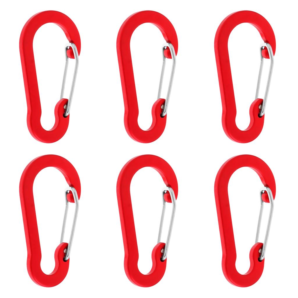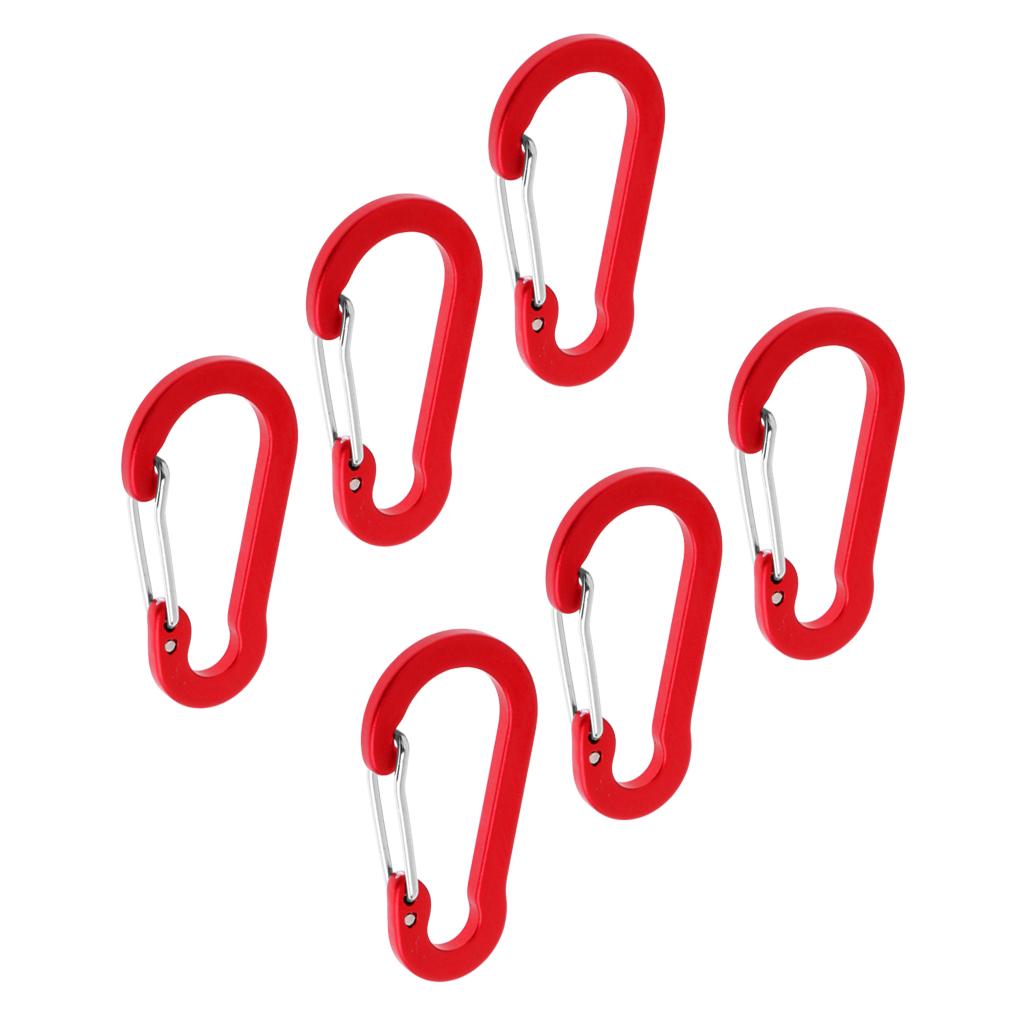 6 Pieces Aluminum D-Ring Carabiner Clip Spring Snap Hook Keychain Red