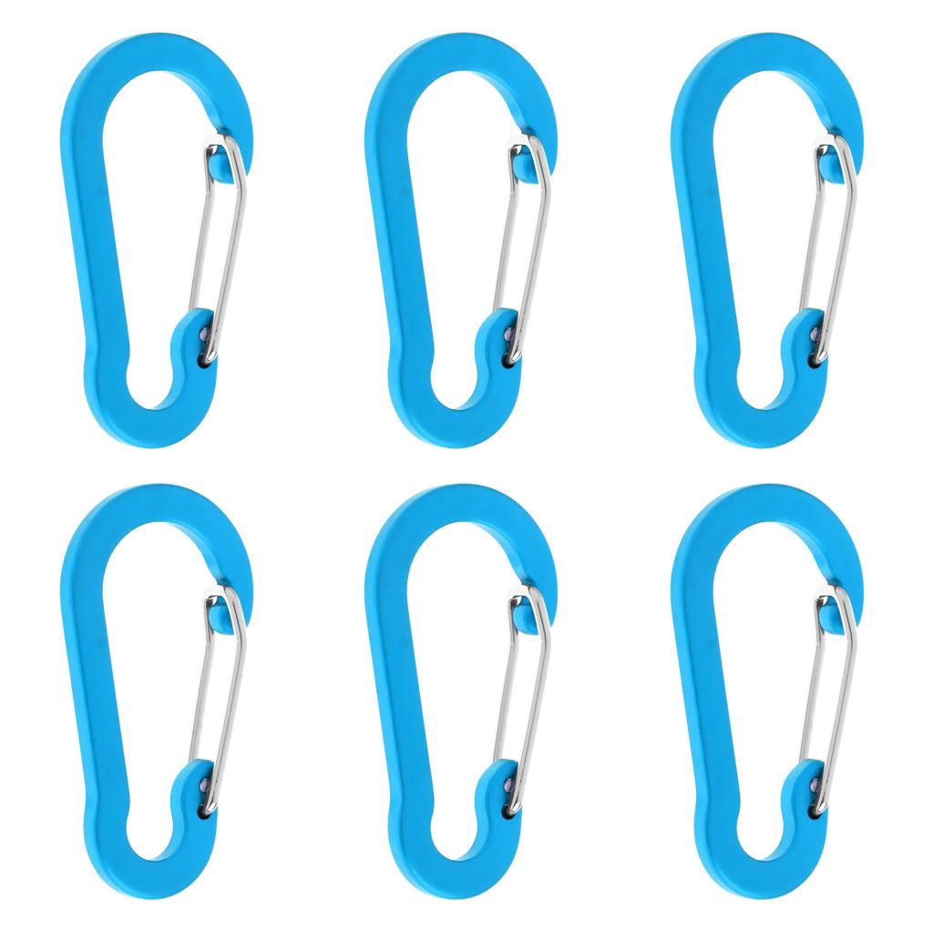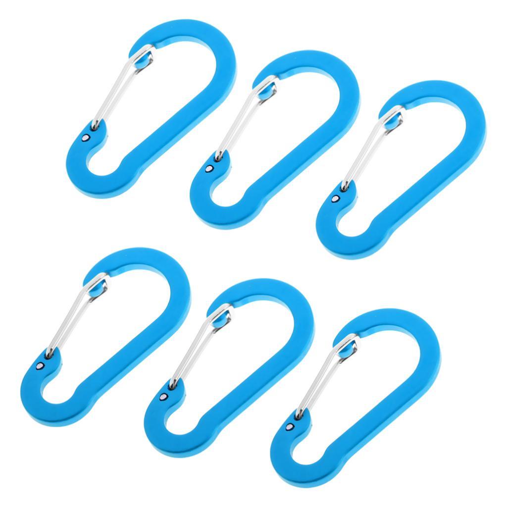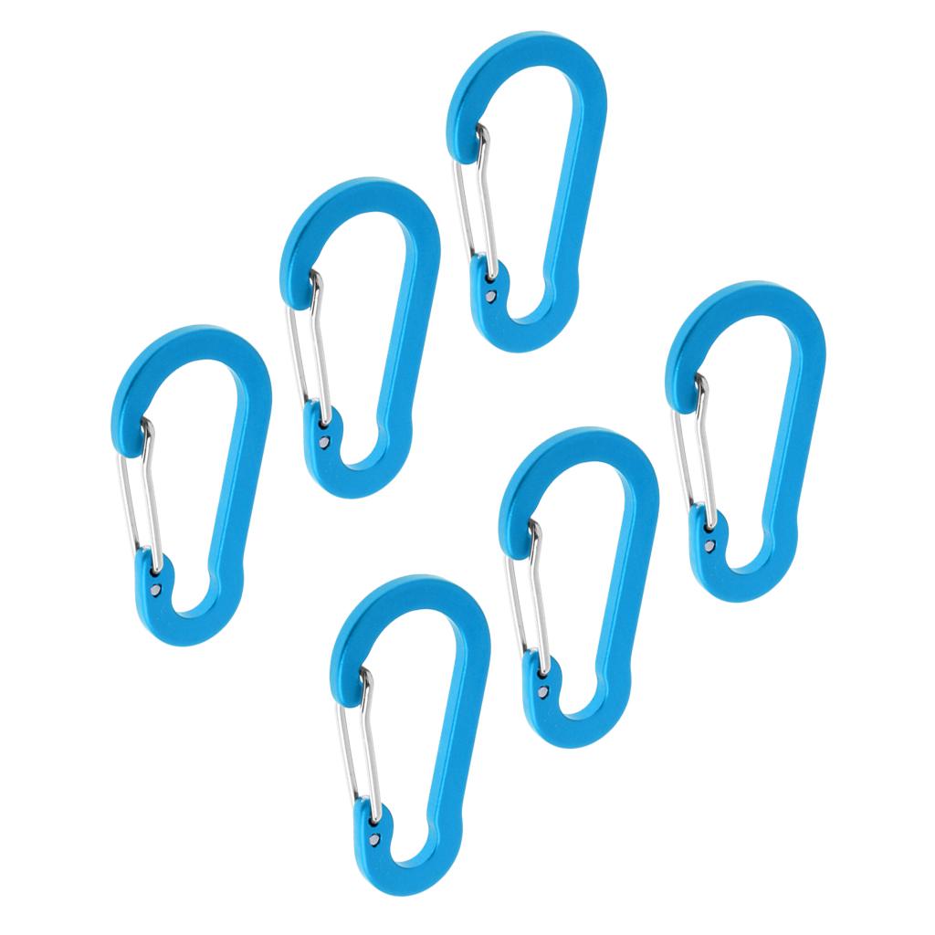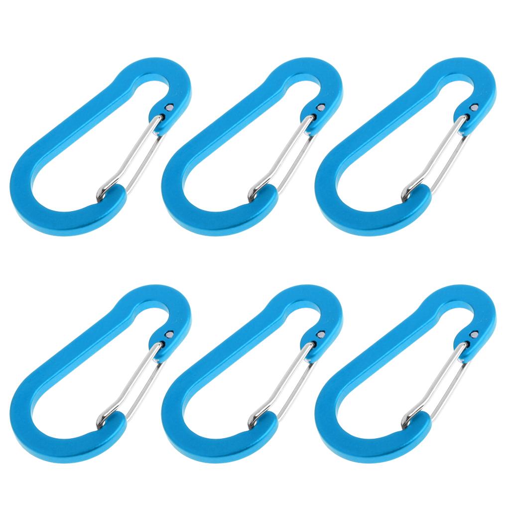 6 Pieces Aluminum D-Ring Carabiner Clip Spring Snap Hook Keychain Sky Blue