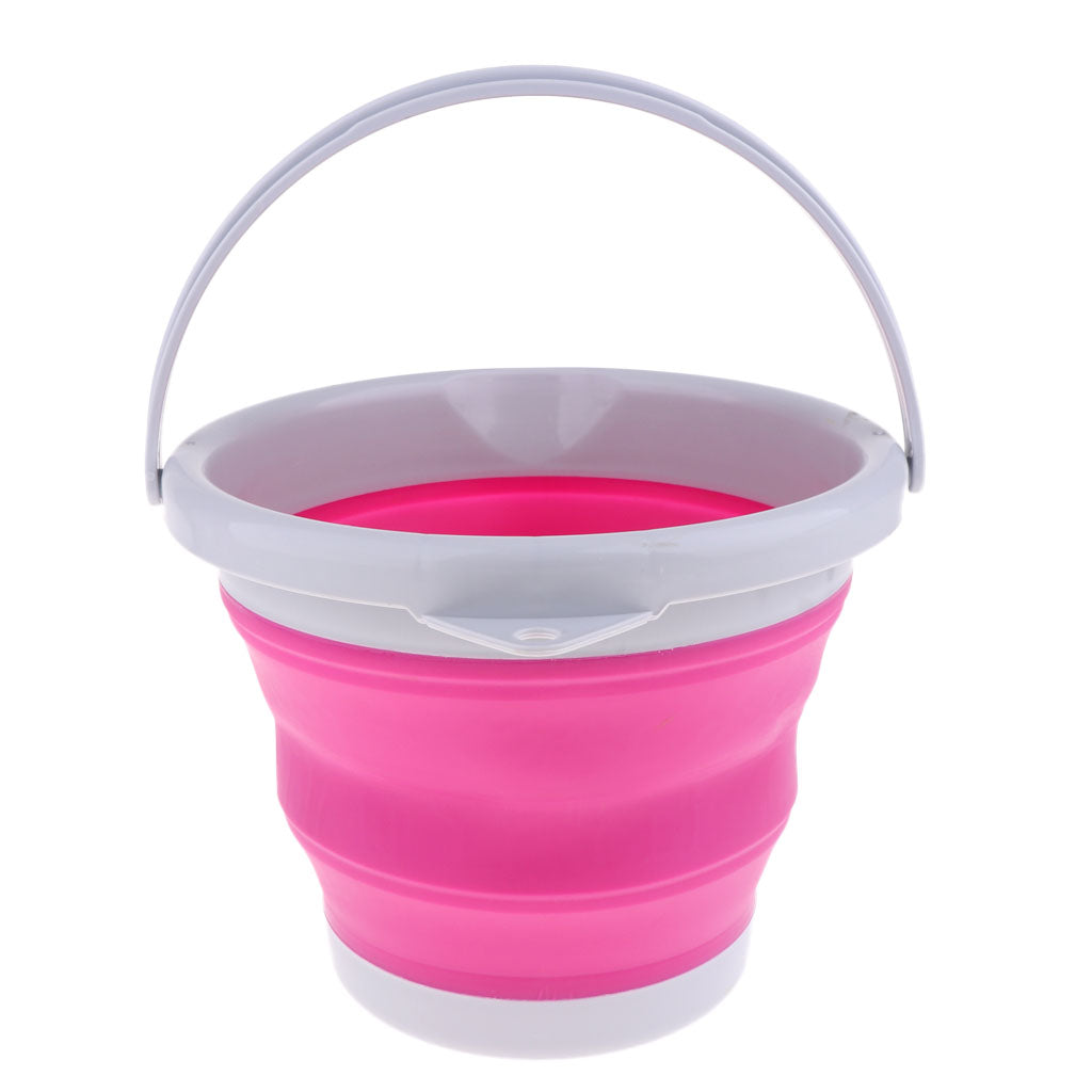 Camping Folding Collapsible Silicone Water Bucket Outdoor Barrel Basin 5L Pink