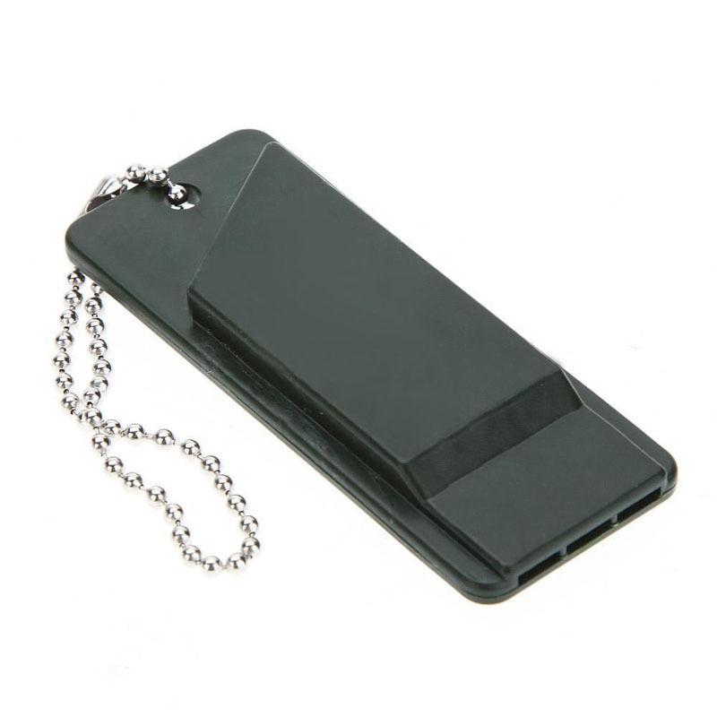 • It is a plastic whistle with a keychain, with 3 frequency voices