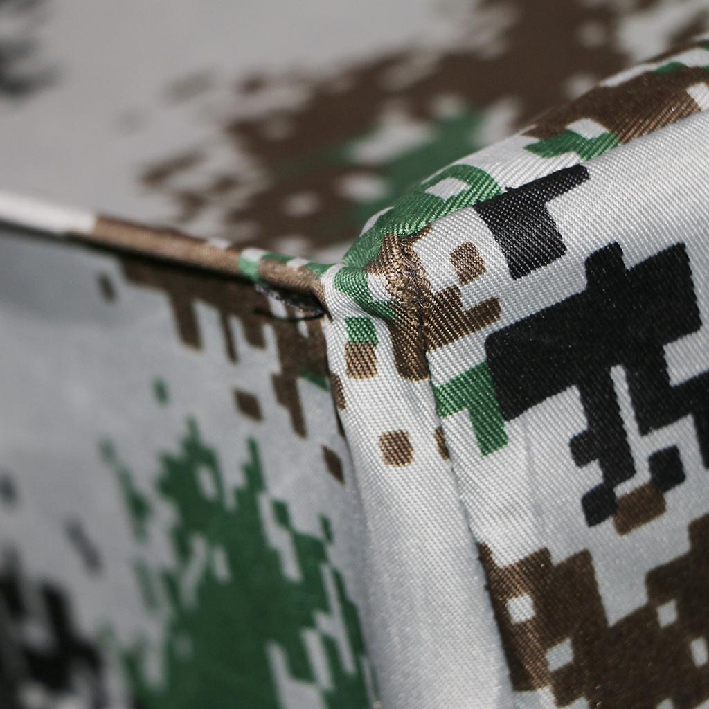 Made of camo fabric + steel frame, strong and portable. Size: 40×40 cm