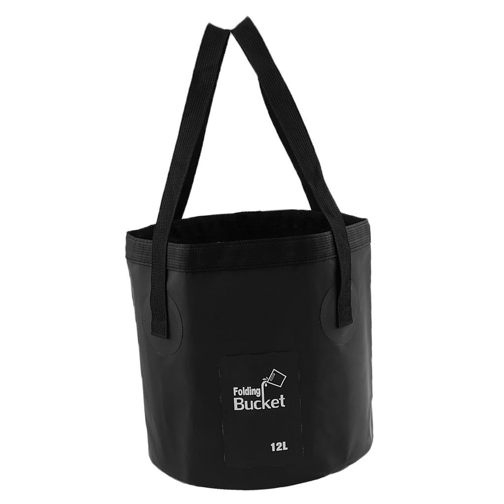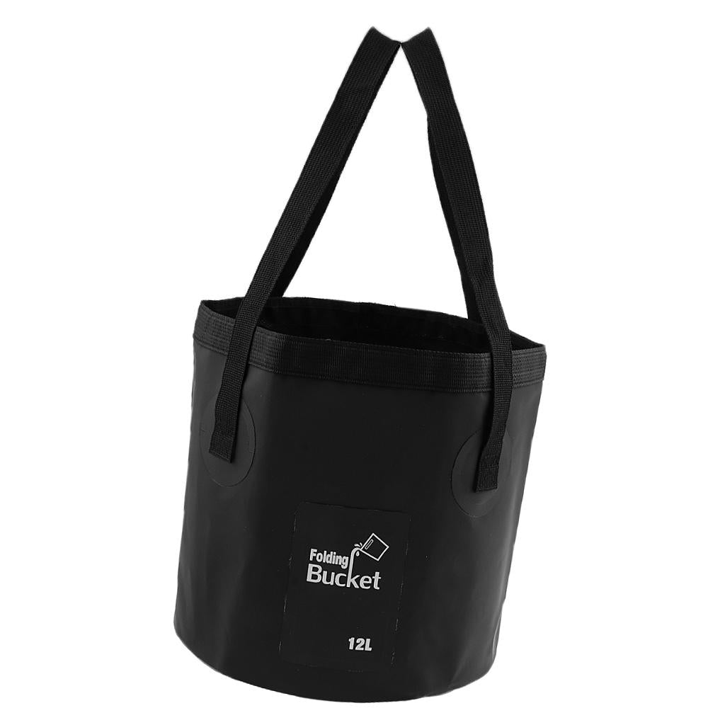 Folding Bucket Water Container Bag for Outdoor Camping Fishing 12L Black